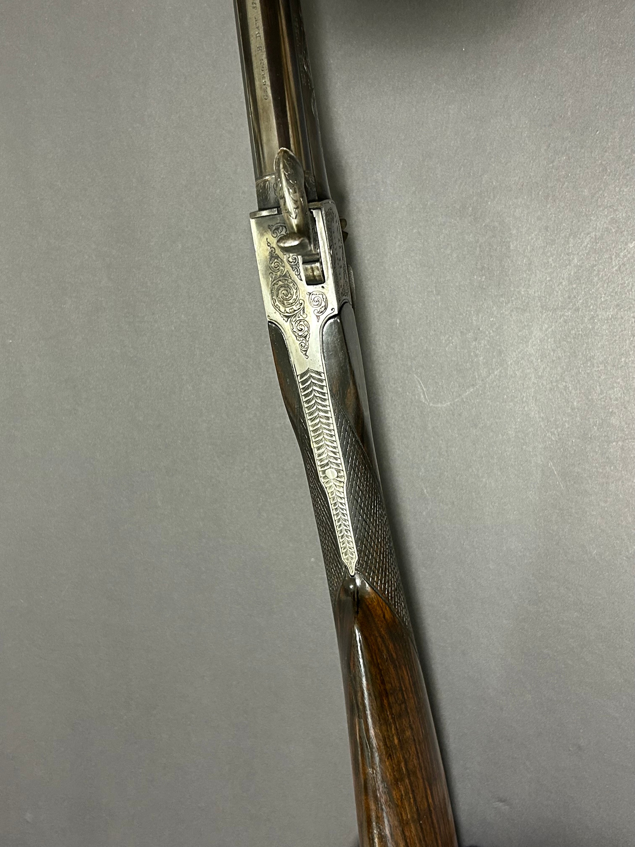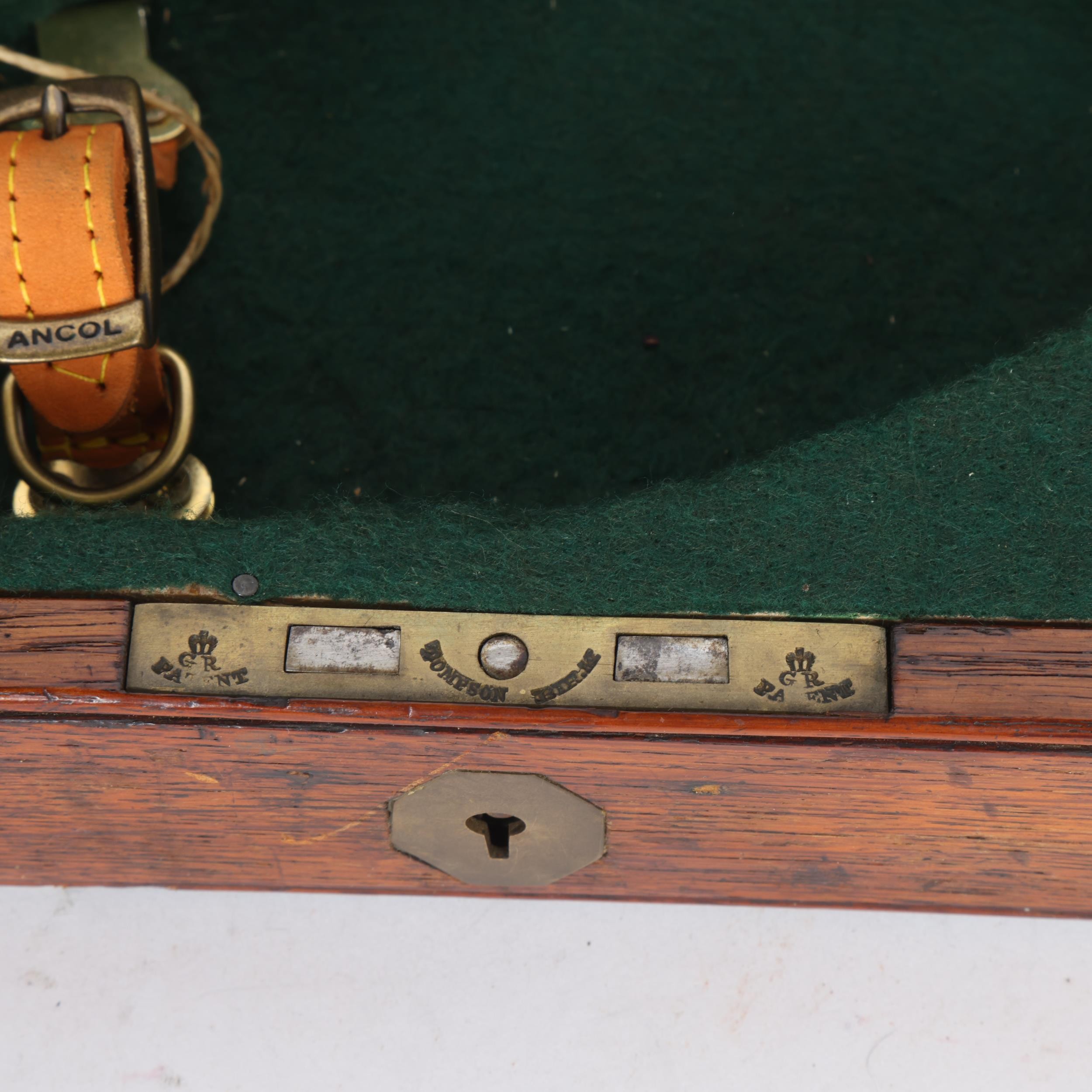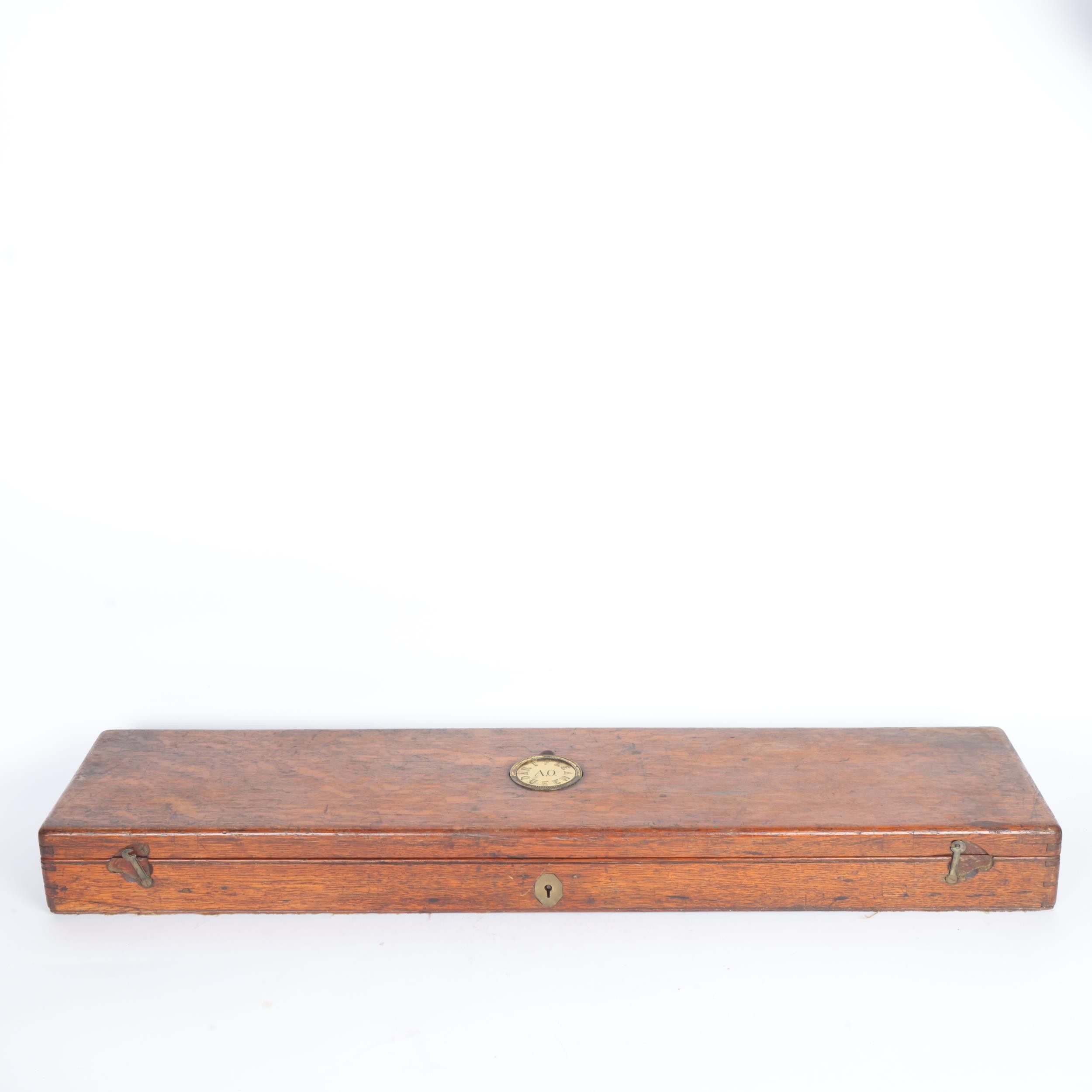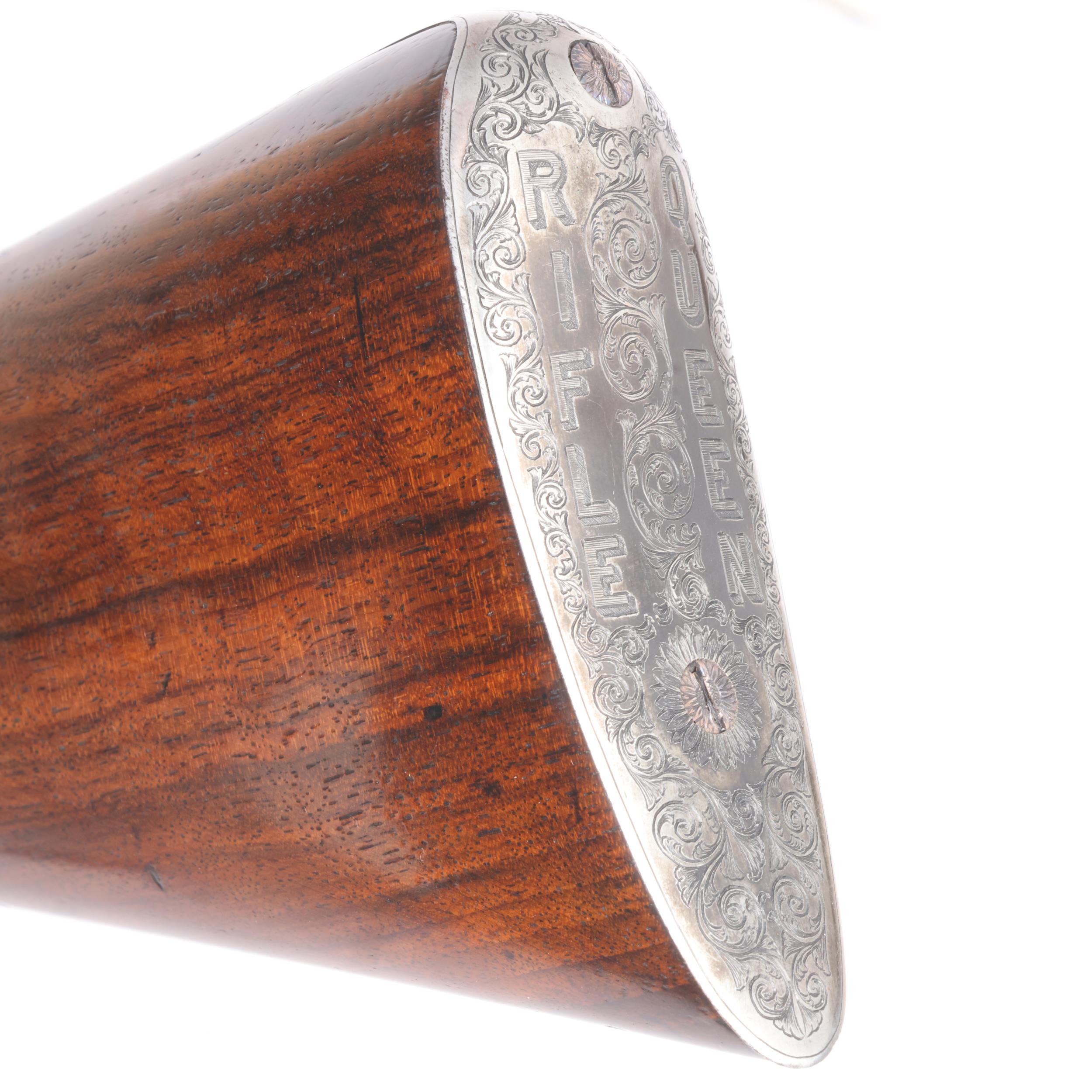 The gun is accompanied by its original mahogany carrying case, which bears a brass plaque on the cover, inscribed "Rifle Queen" centred with the initials "A.O.". The case with original William Tompson of Birmingham Patent lock. The interior with re-fitted green baize lining and later plaque.