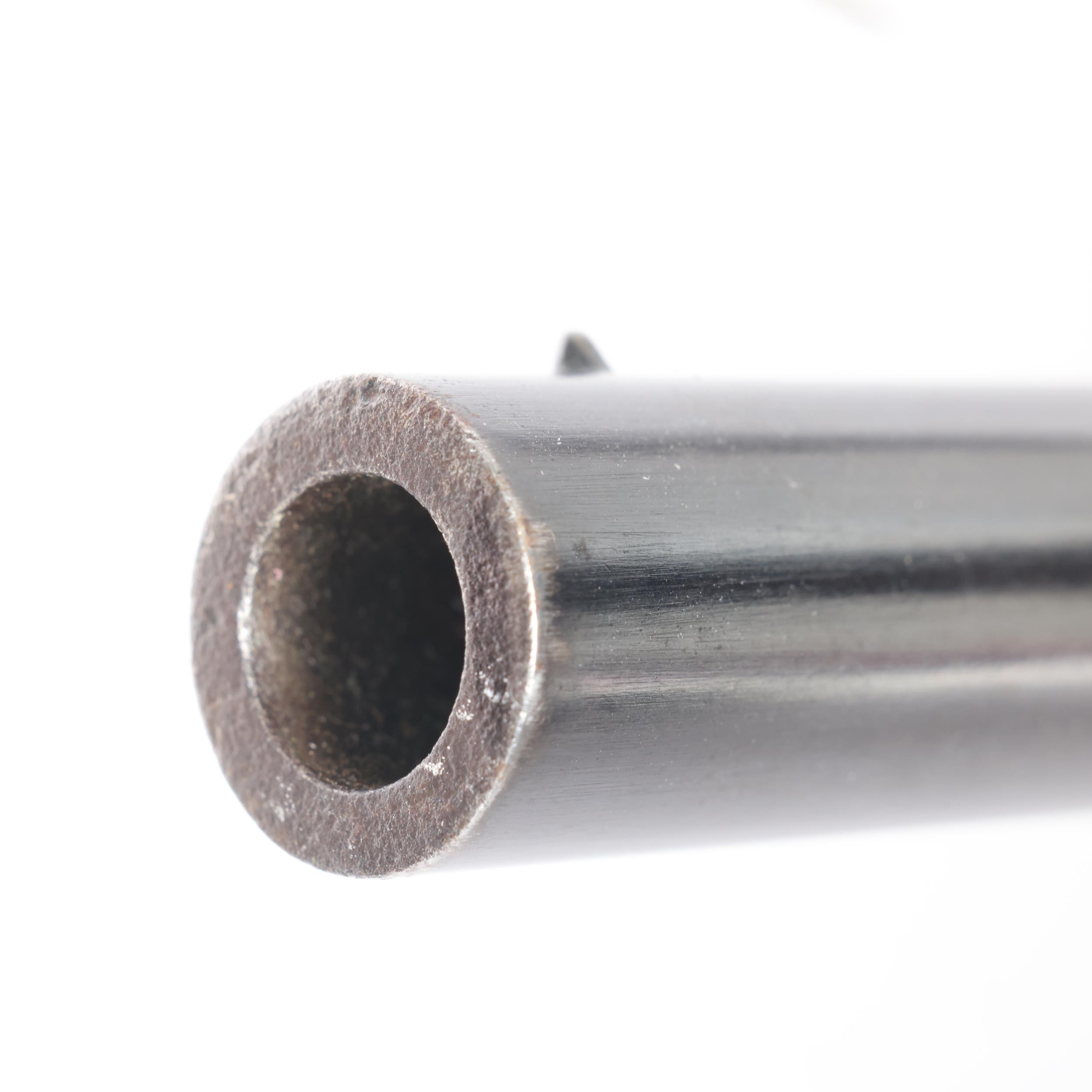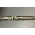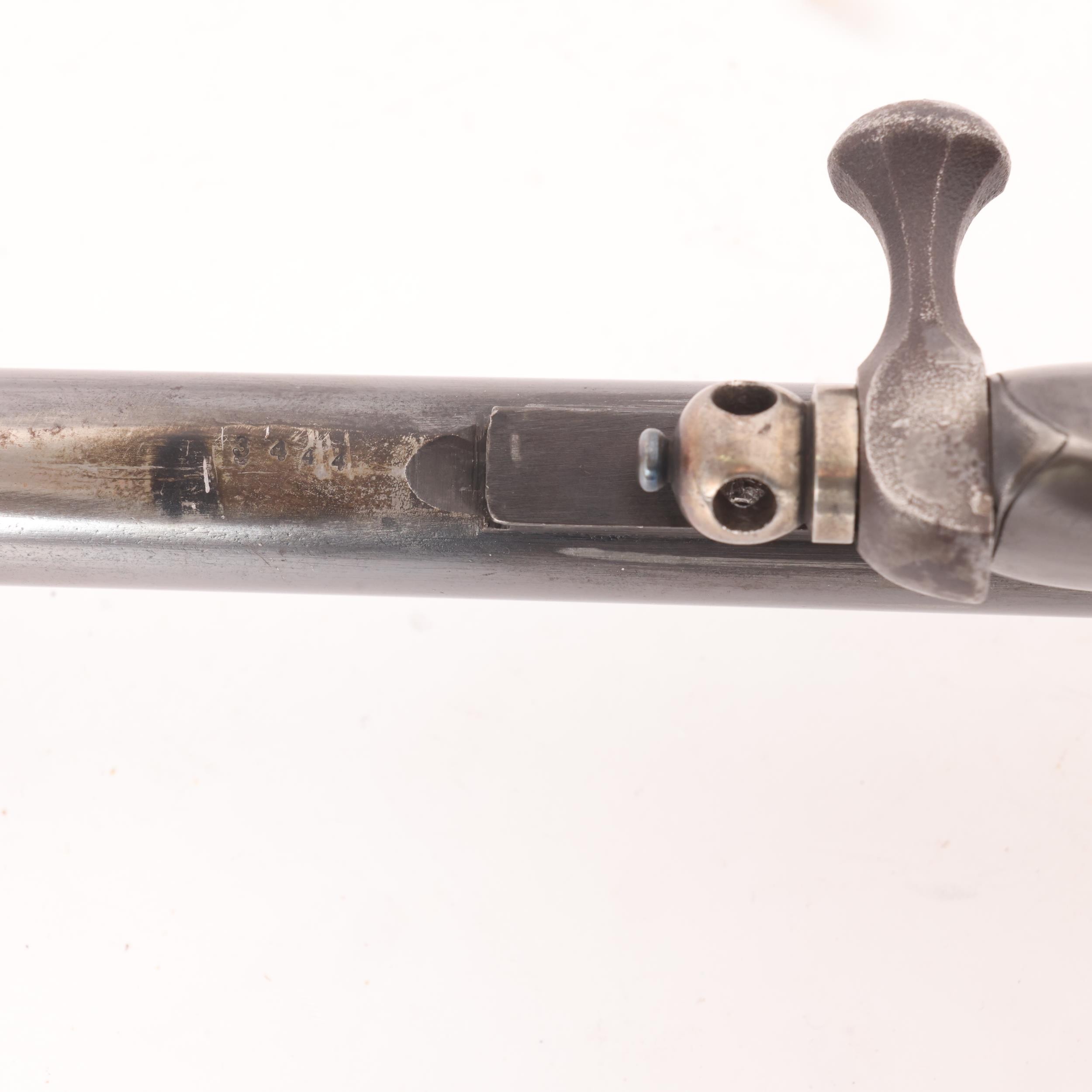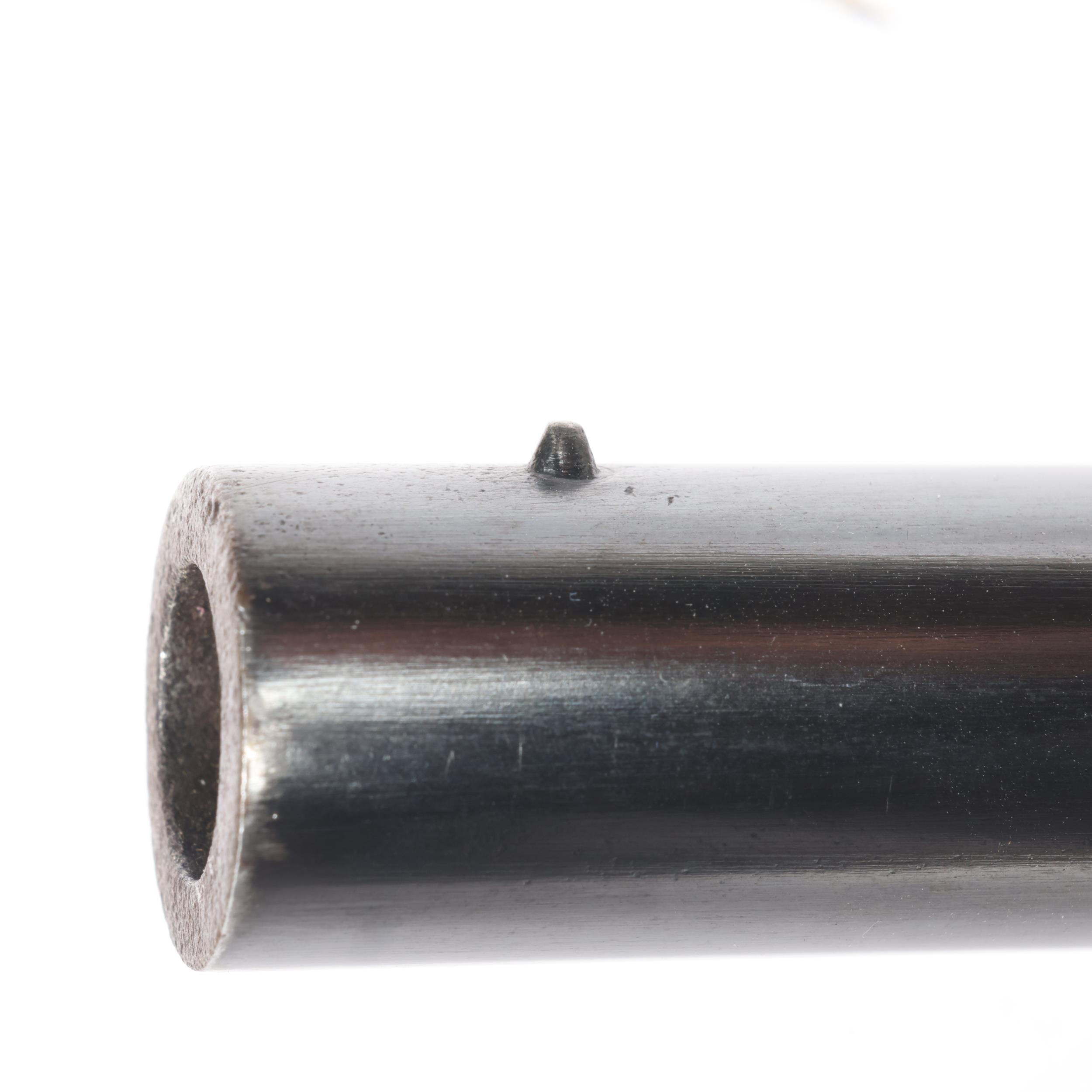 Target guns are usually fitted with a rifled barrel to increase accuracy, but the calibre of this example is smooth bored, which suggests shot would’ve been used instead of a bullet to improve the chances of hitting an object, or even used in a manner of trick shooting.