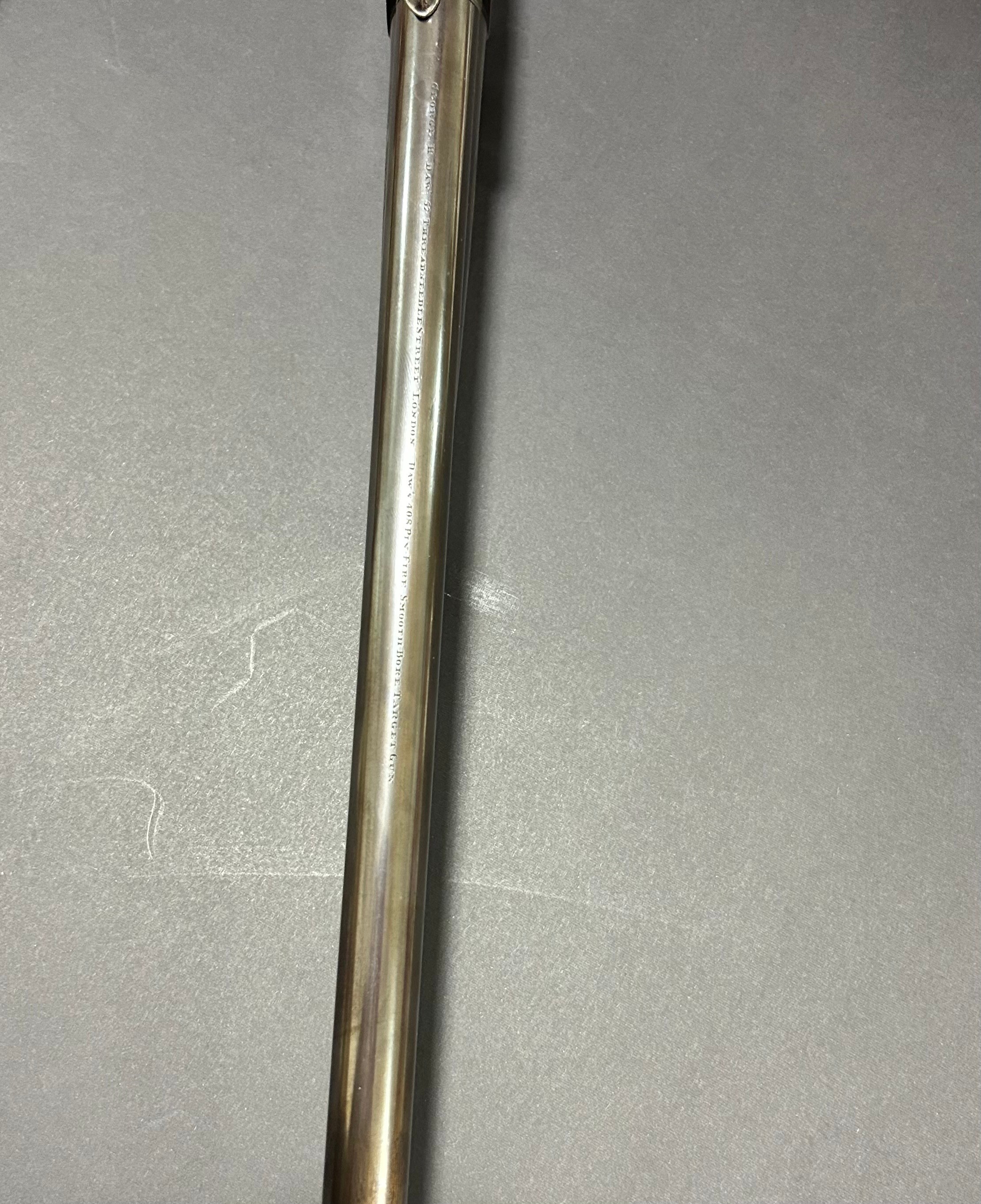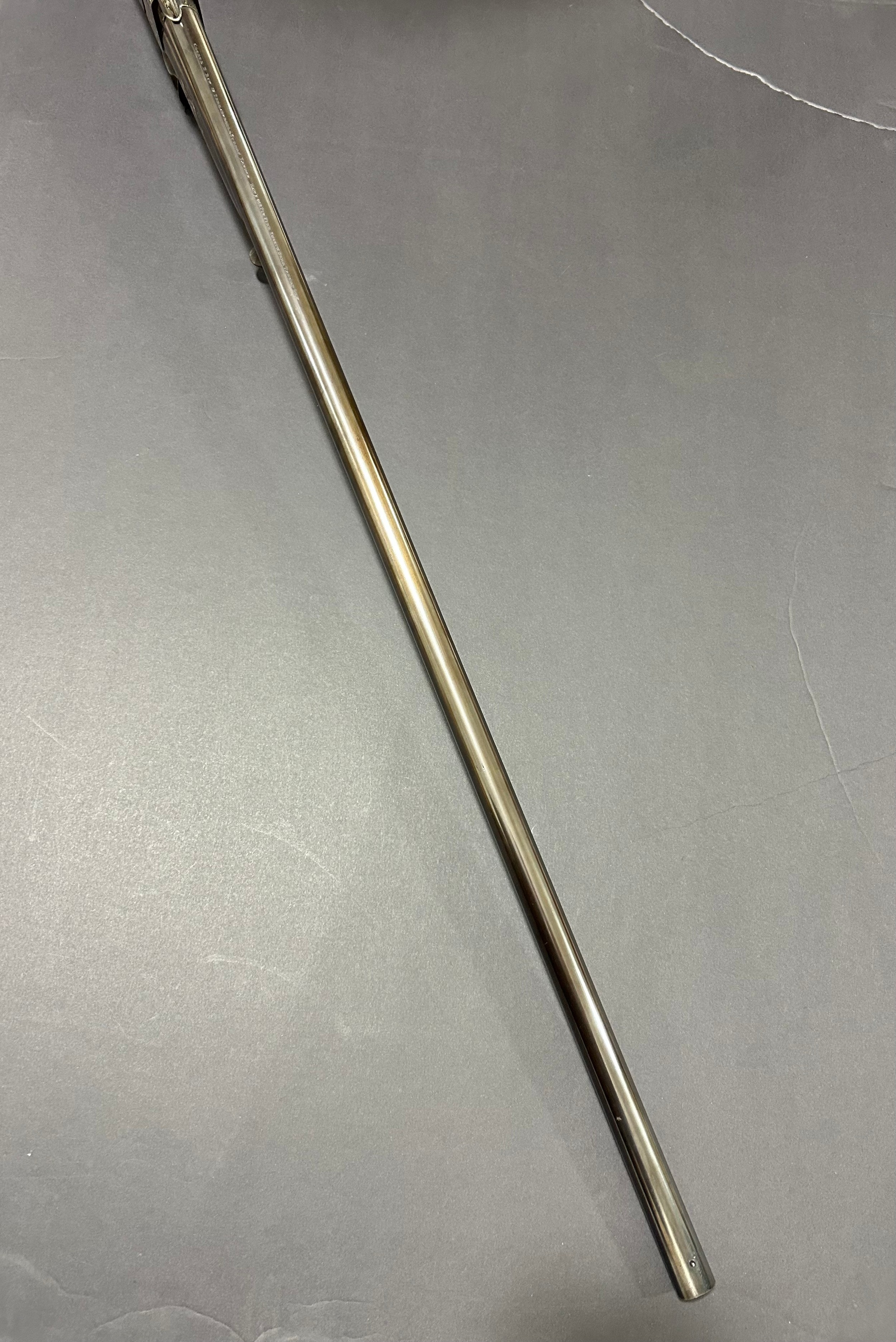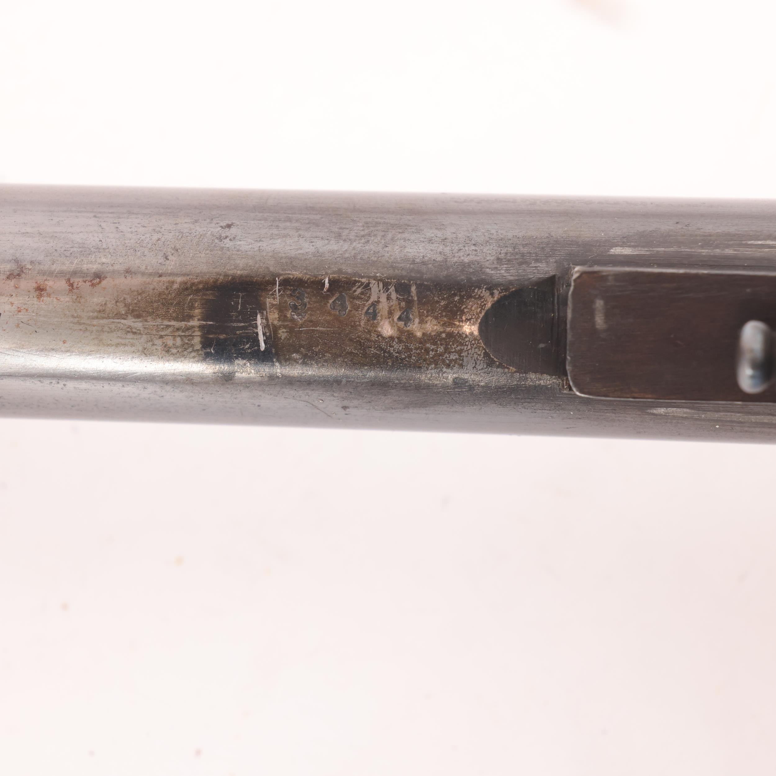 Target guns are usually fitted with a rifled barrel to increase accuracy, but the calibre of this example is smooth bored, which suggests shot would’ve been used instead of a bullet to improve the chances of hitting an object, or even used in a manner of trick shooting.