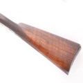 Another ingenious segment of this rifle is the ejection mechanism, which makes use of the pin within the pin fire cartridge as a means of extracting the cartridge. Once the gun has been fired, the barrel is slid forward with the hammer kept in place, therefore holding the cartridge, and when put to half cock/safe the hammer then releases the cartridge and is ready to be reloaded.