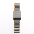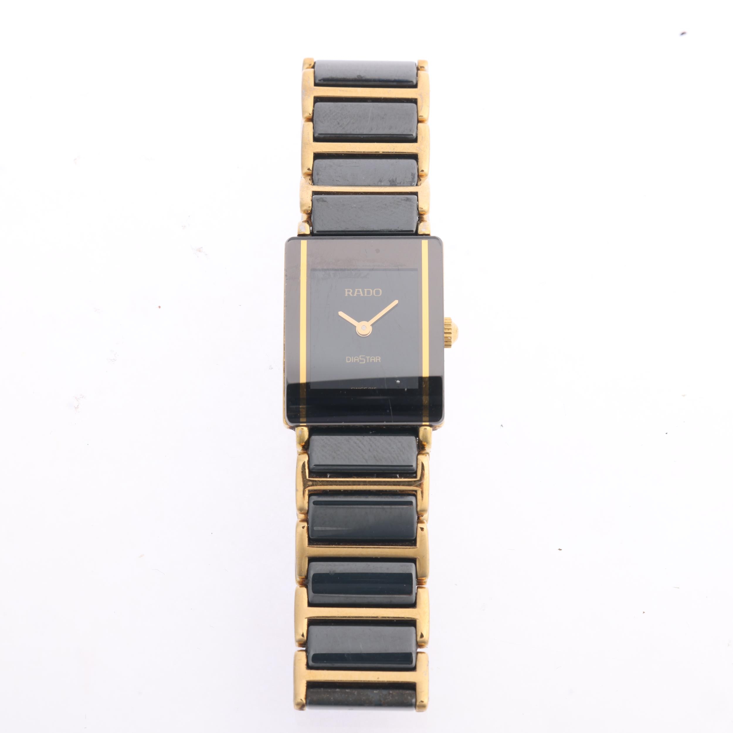 RADO - a lady's gold plated black Hi-Tech ceramic Diastar quartz bracelet watch, ref. 153.0283.3N, black dial with gilt pencil hands and matching Rado ceramic bracelet, serial no. 01583075, case width 18mm, not currently working