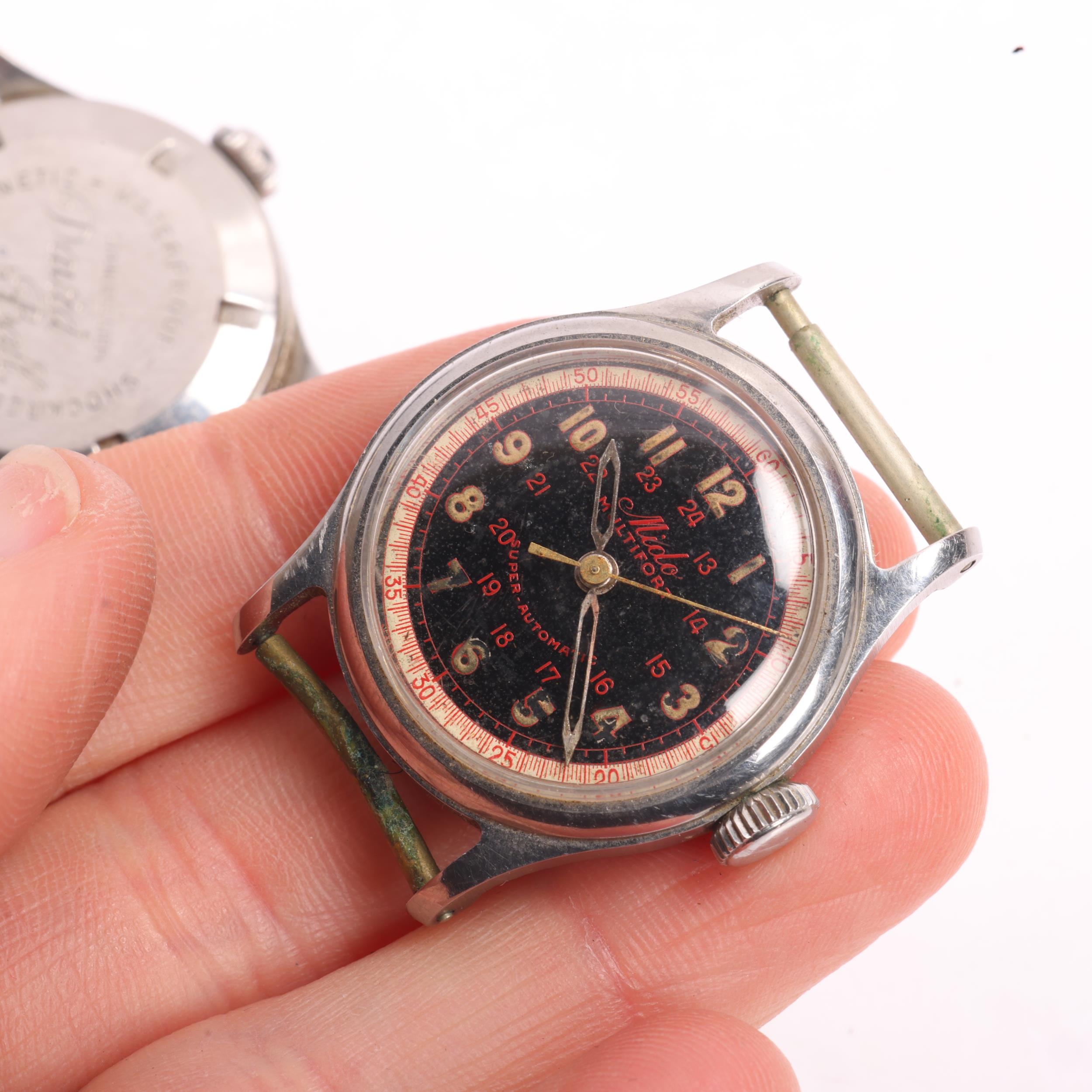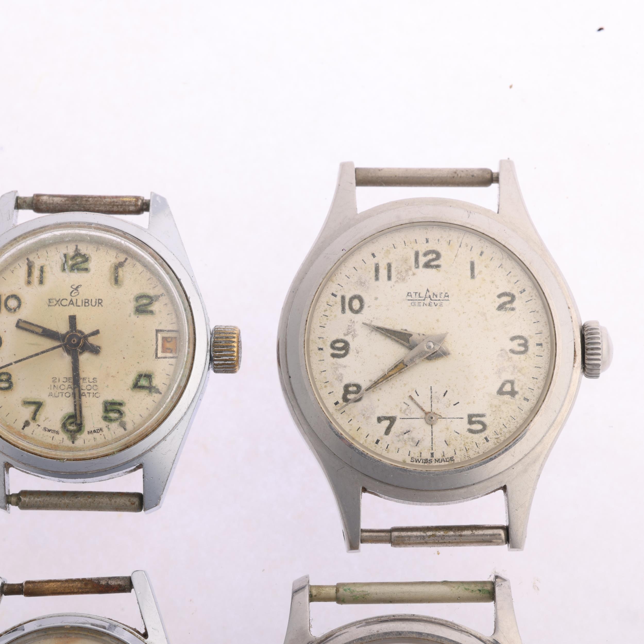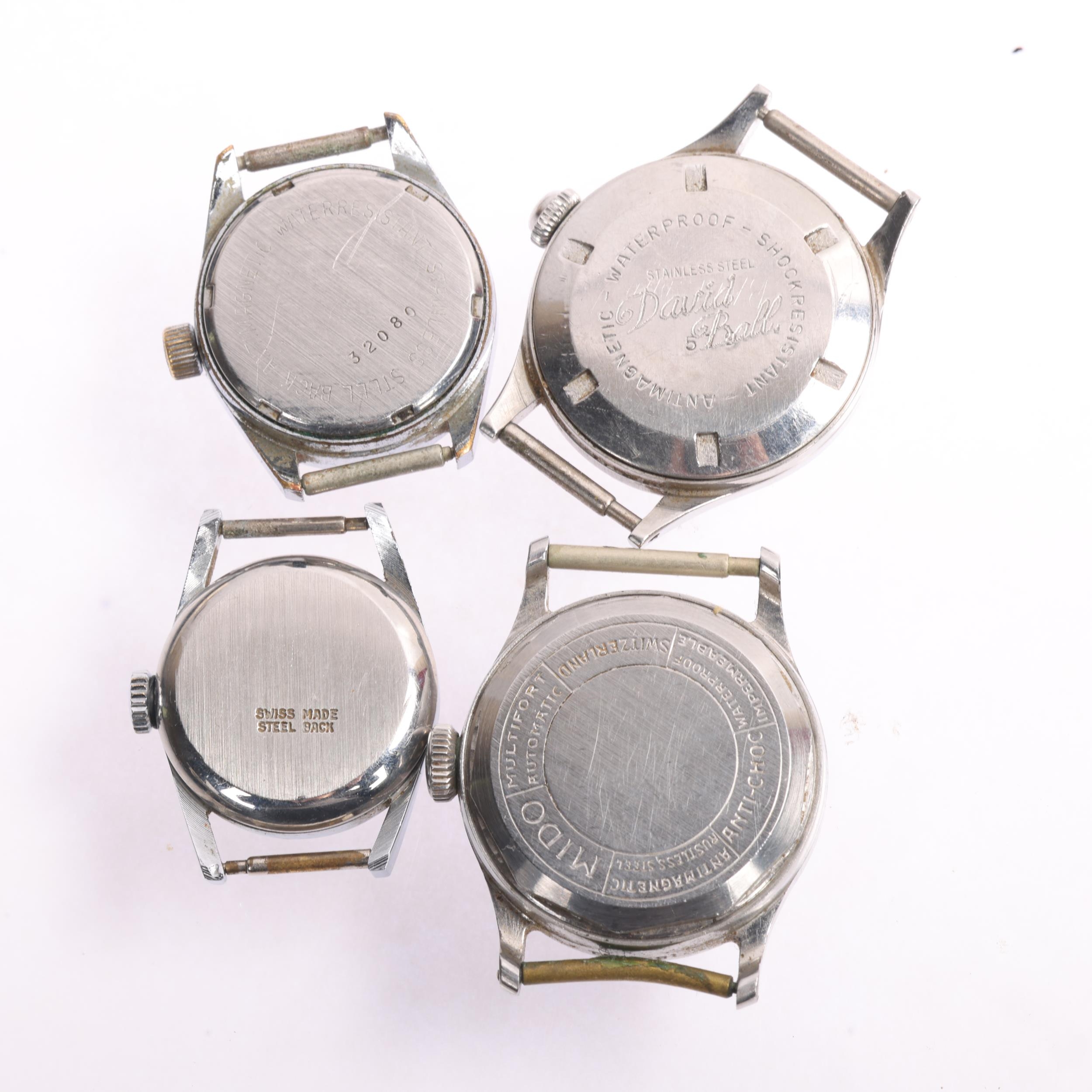 4 Vintage stainless steel wristwatch heads, including Mido Multifort, Atlanta Geneve, Excalibur automatic, etc (4)
