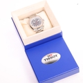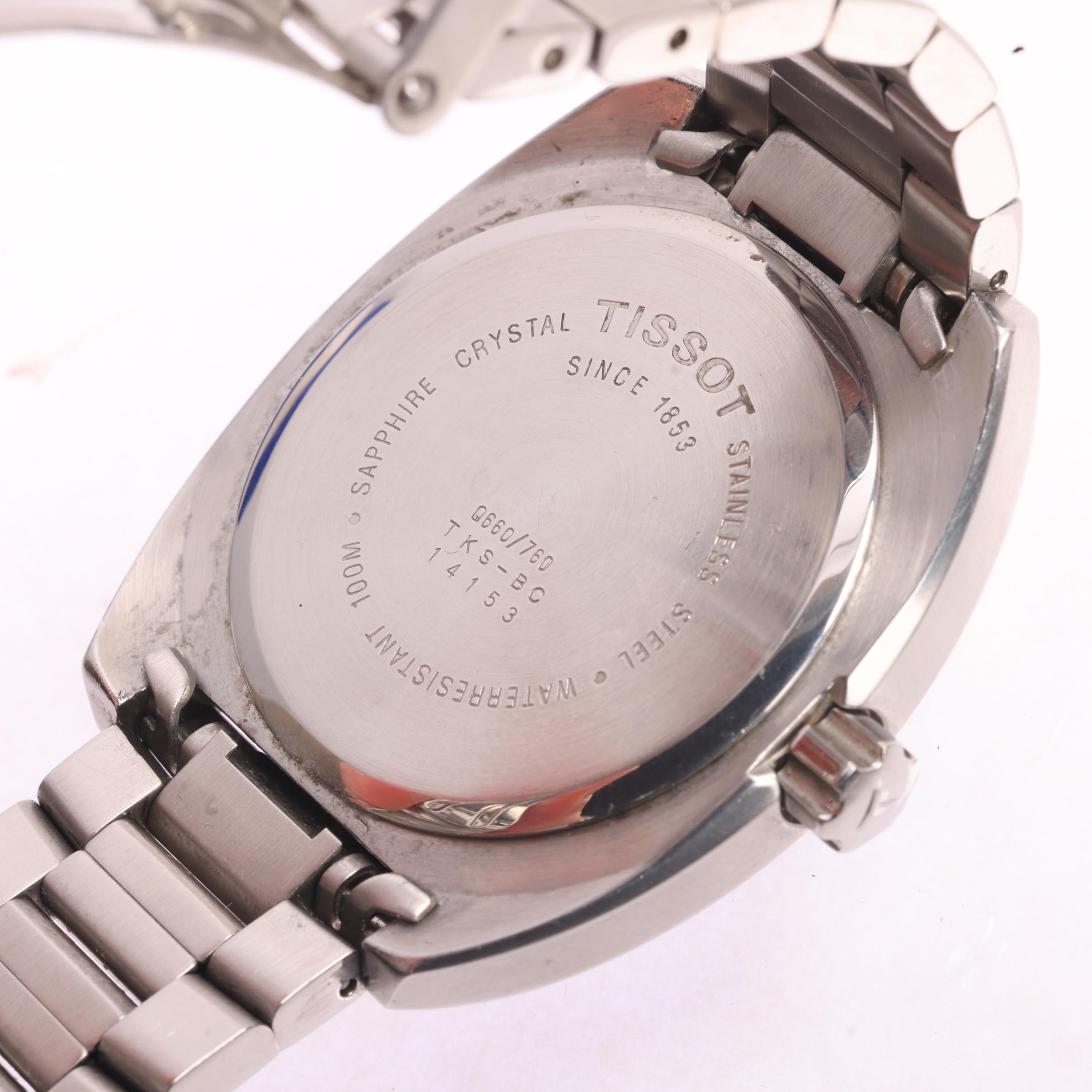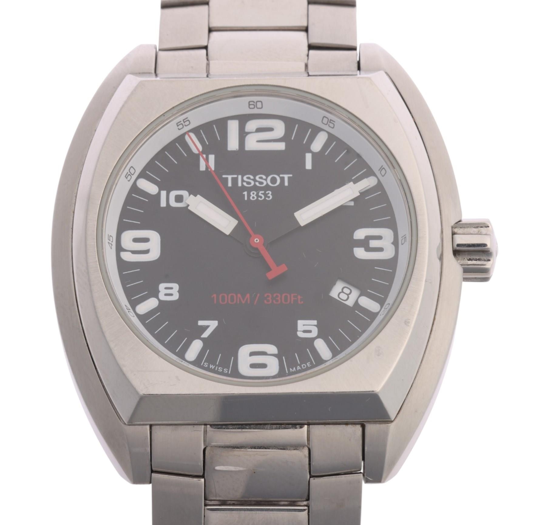 TISSOT - a stainless steel T-Sport quartz calendar bracelet watch, ref. TKS-BC, circa 2004, black dial with luminous quarterly Arabic numerals, white block hands with luminous inserts, red sweep centre seconds hand and date aperture, serial no. 14153, case width 42mm, working order, boxed with papers