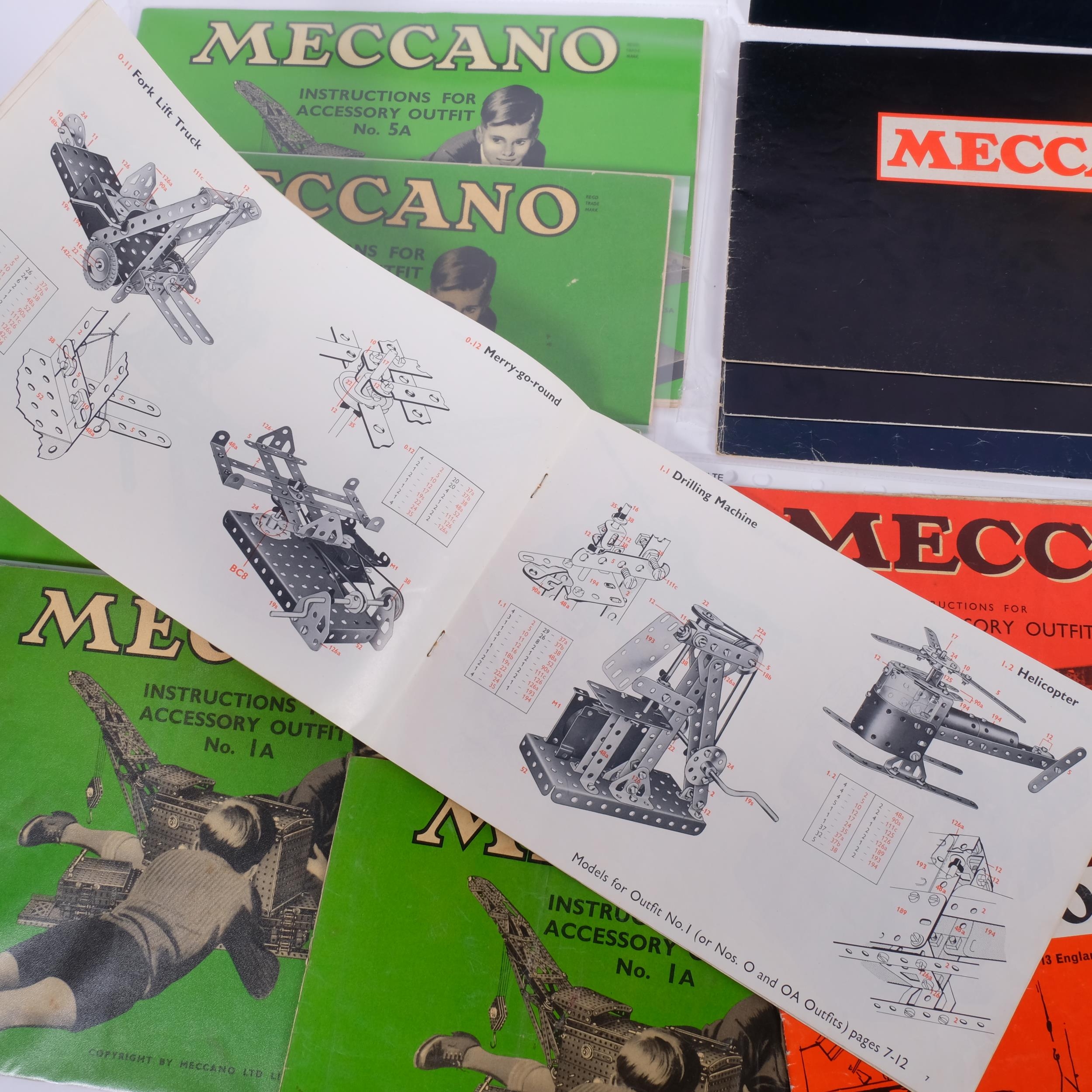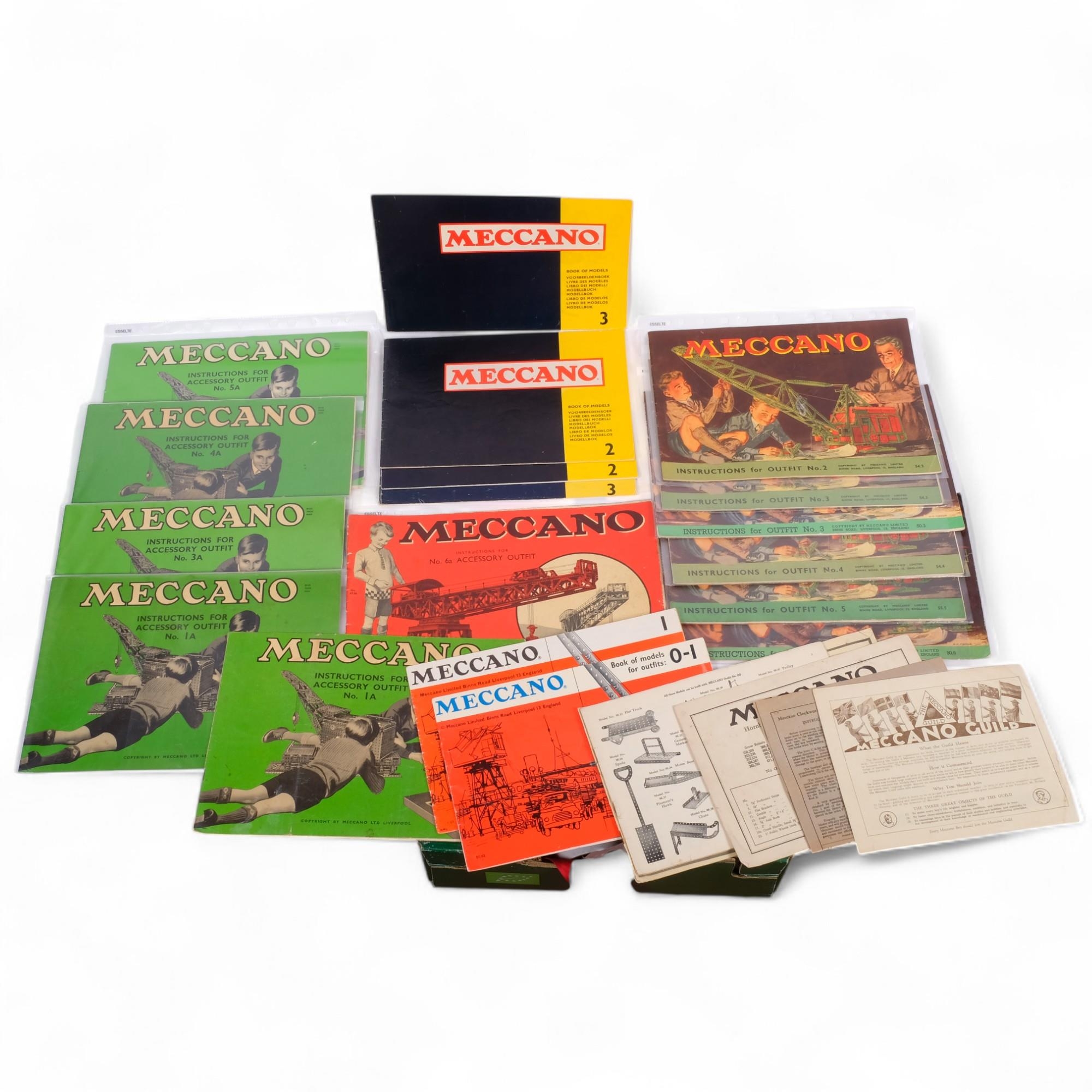A selection of Meccano instruction books and pamphlets, including manuals or instructions for outfits no. 2, 3, 5, etc