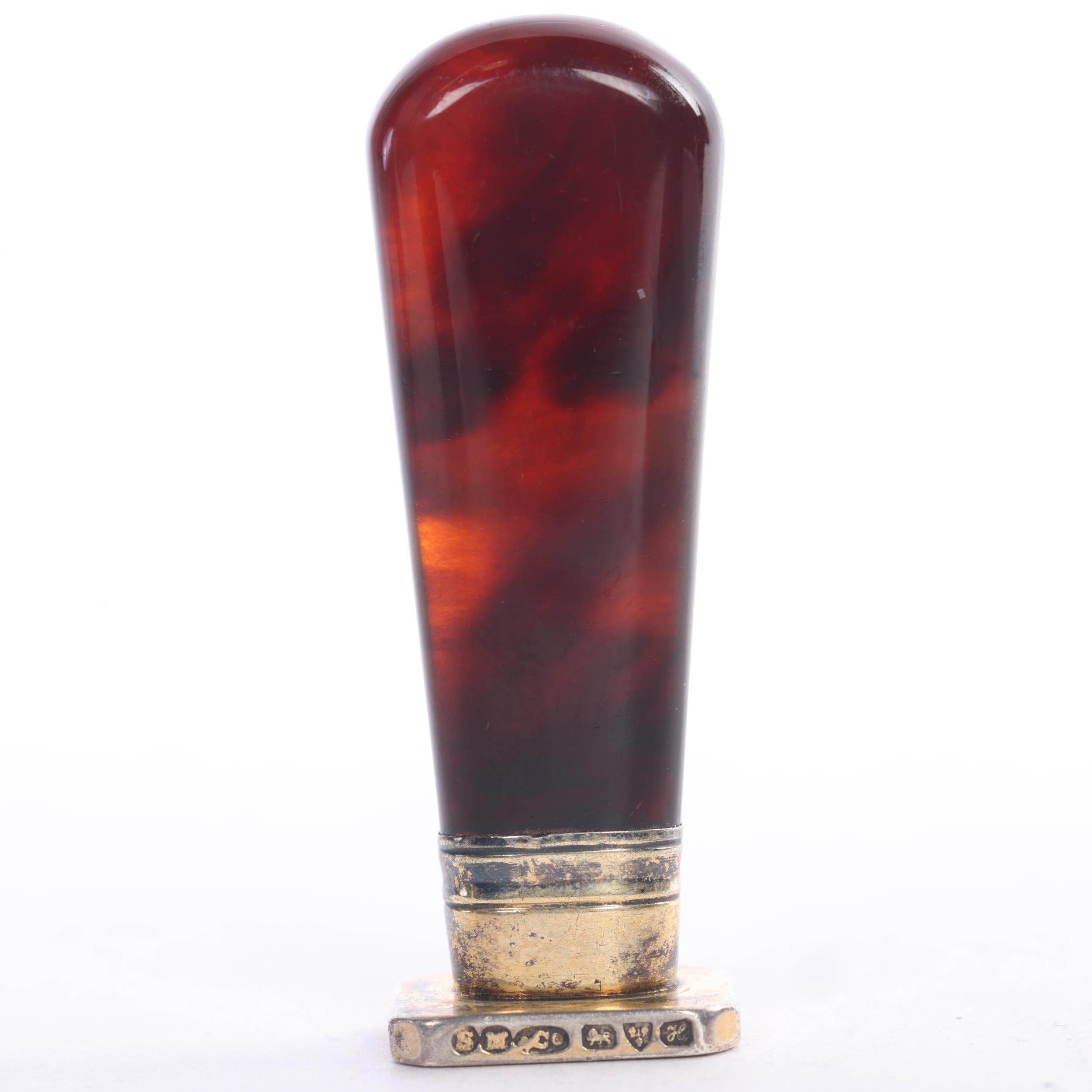 An Edwardian tortoiseshell-handled silver seal, by Sampson Mordan & Co, hallmarks Chester 1908, length 5cm