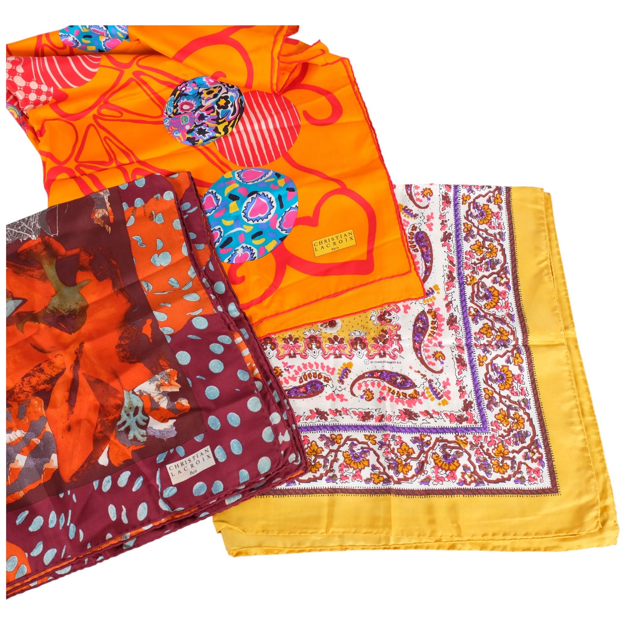 2 Christian Lacroix, Paris, silk scarves together with a Souleiado silk scarf, all with makers marks