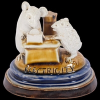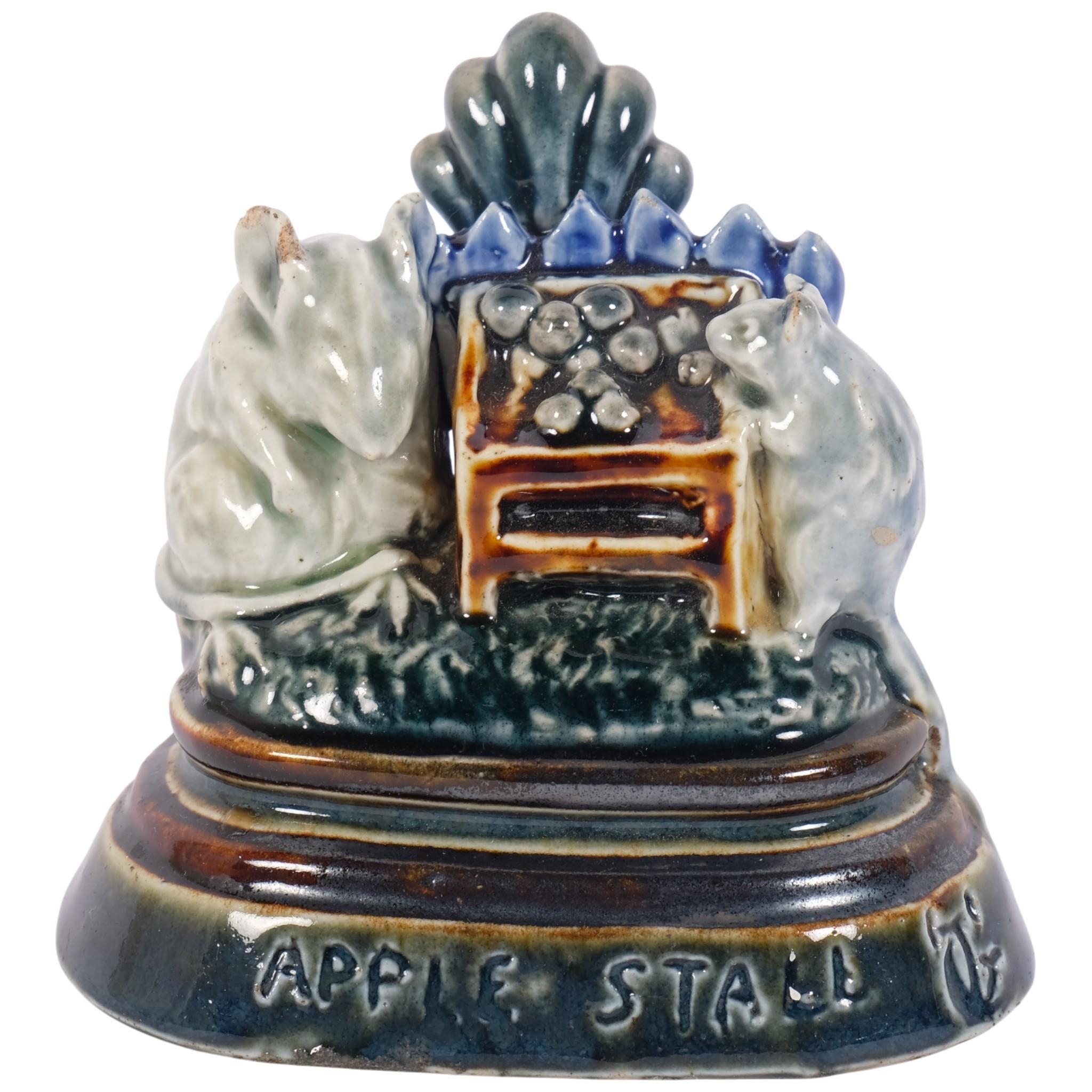 A rare Doulton Lambeth stoneware pottery 'Apple Stall' mouse menu holder, by George Tinworth, 9.5cm