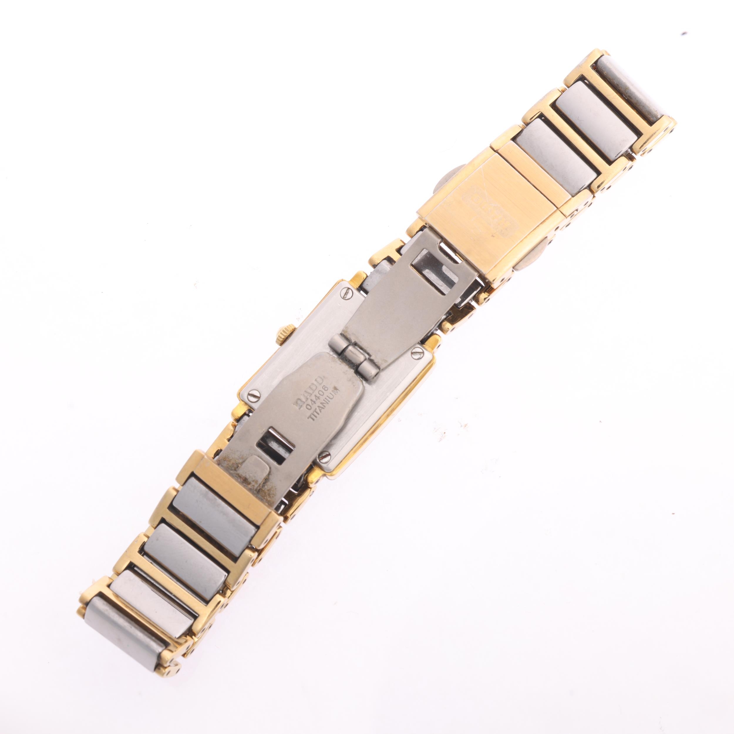 RADO - a lady's gold plated ceramic Diastar quartz bracelet watch, ref. 153.0383.3, silvered dial with gilt dot hour markers, pencil hands and matching ceramic bracelet, serial no. 04571349, case width 18mm, working order