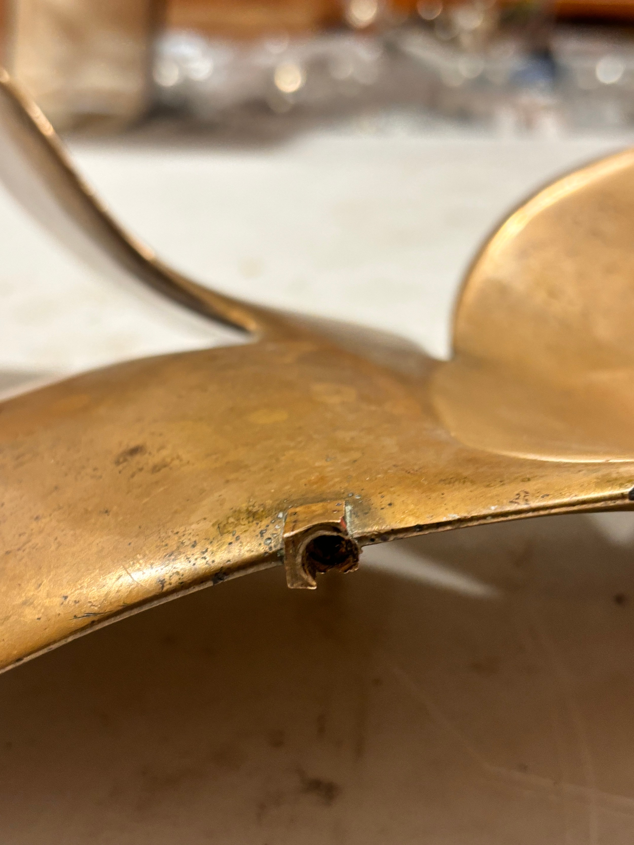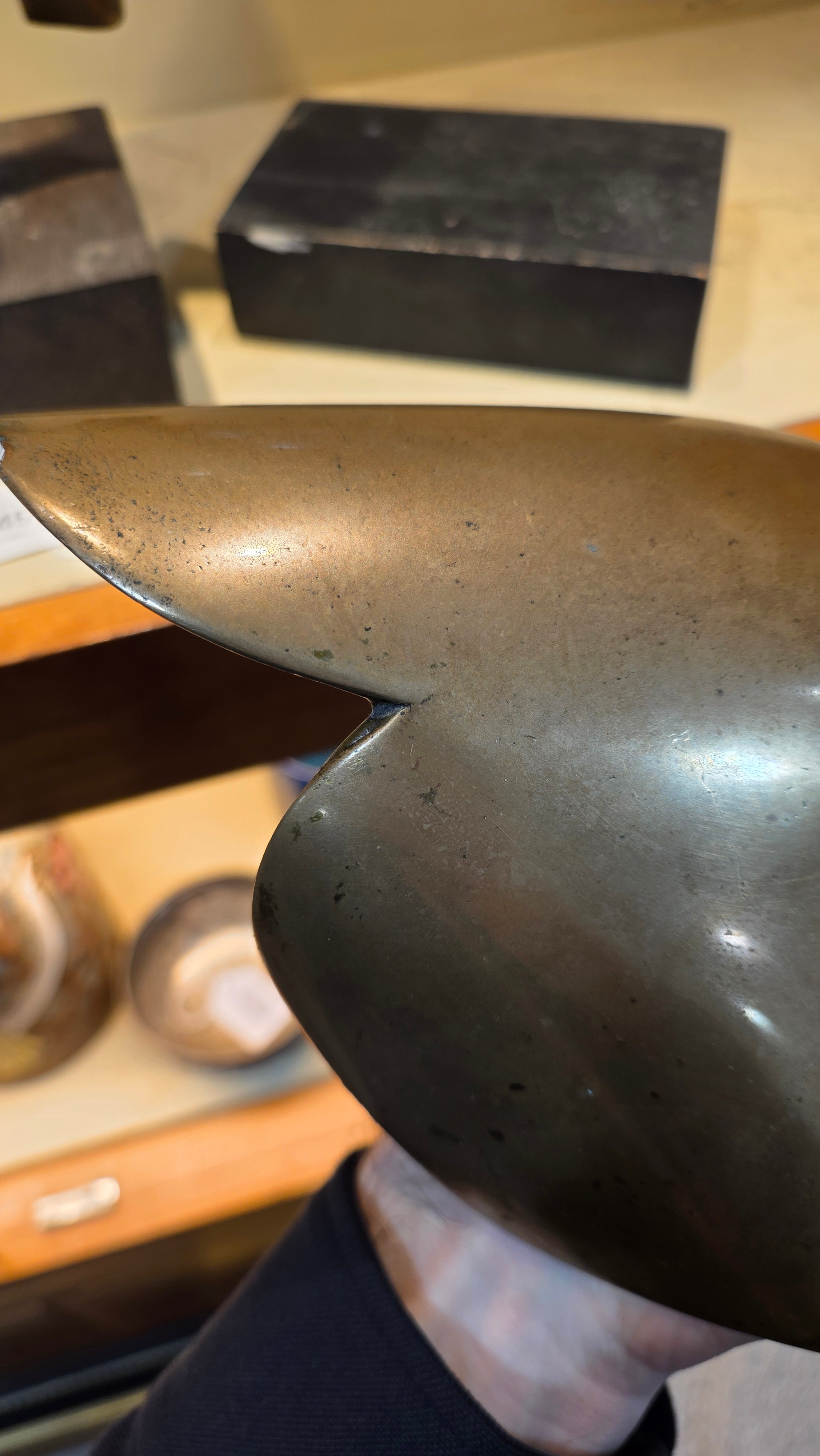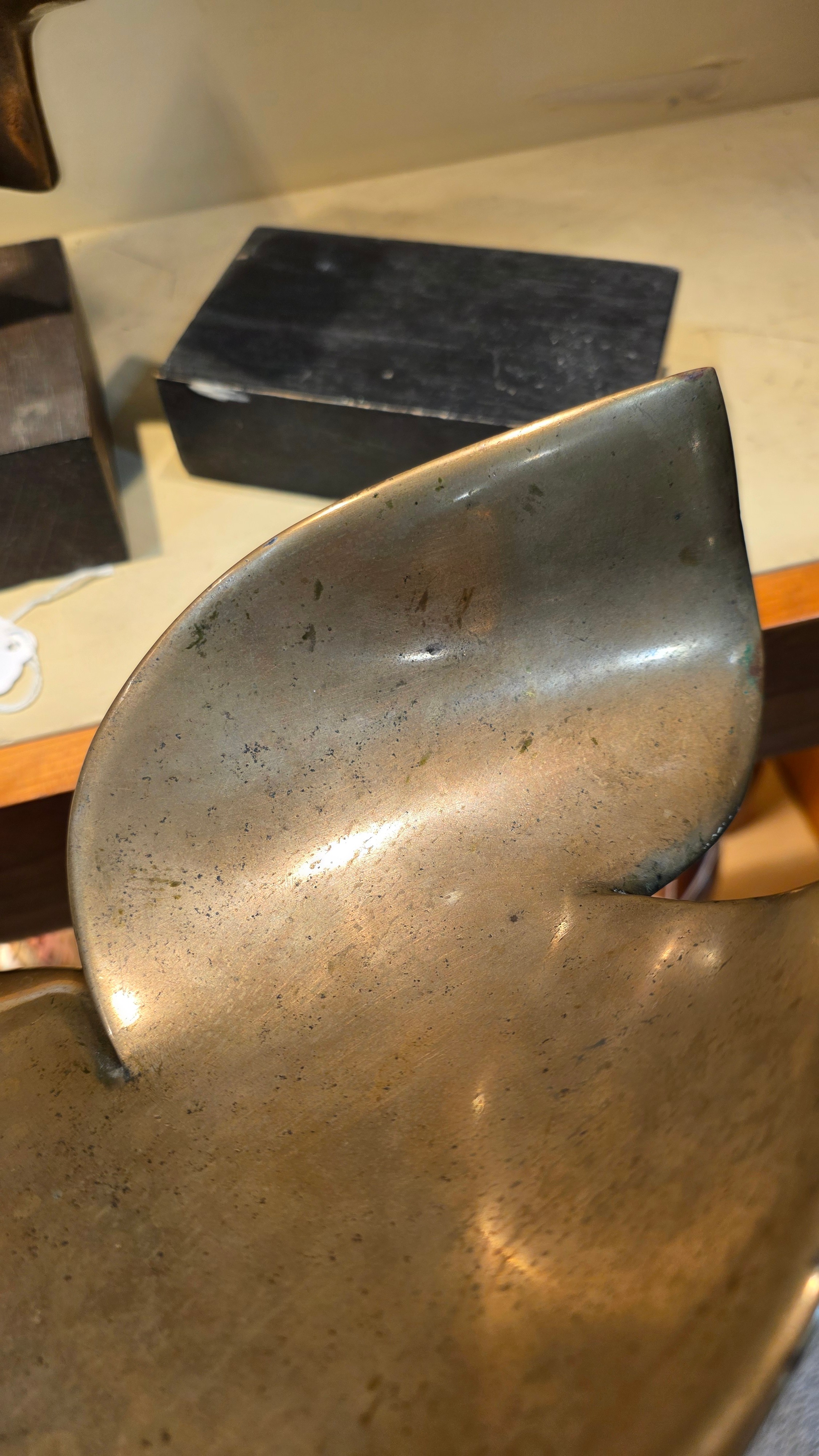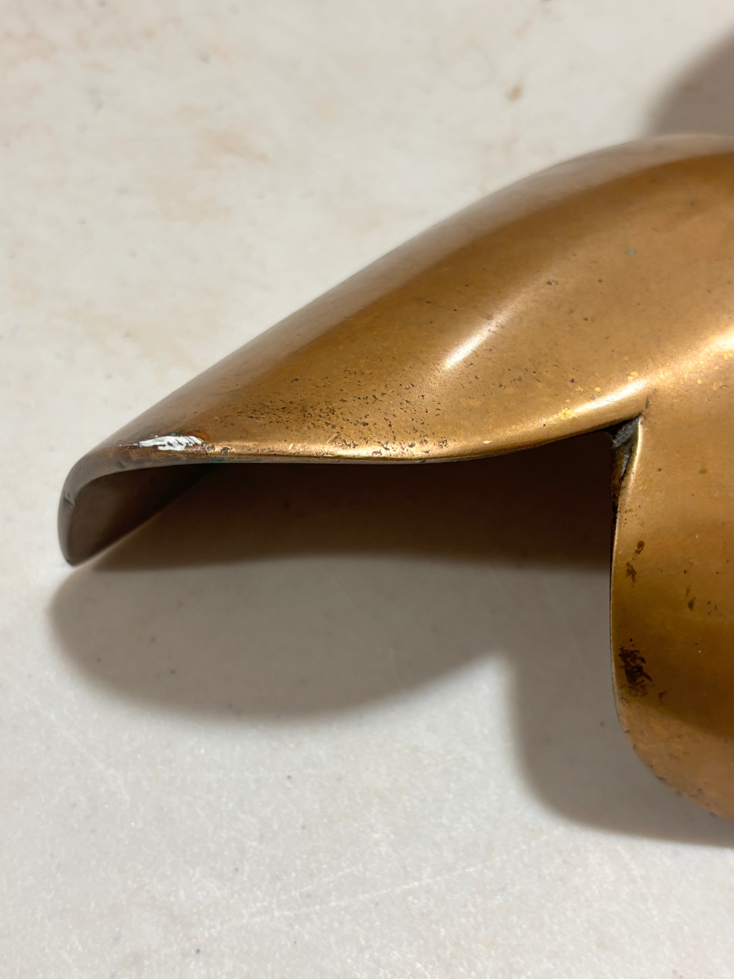 An addition square section was added to the bottom on the sculpture and has screw threading, this box section is broken to two sides, a new rod may hold this on the base or a repair to the box section may be required, otherwise good condition with slight tarnishing