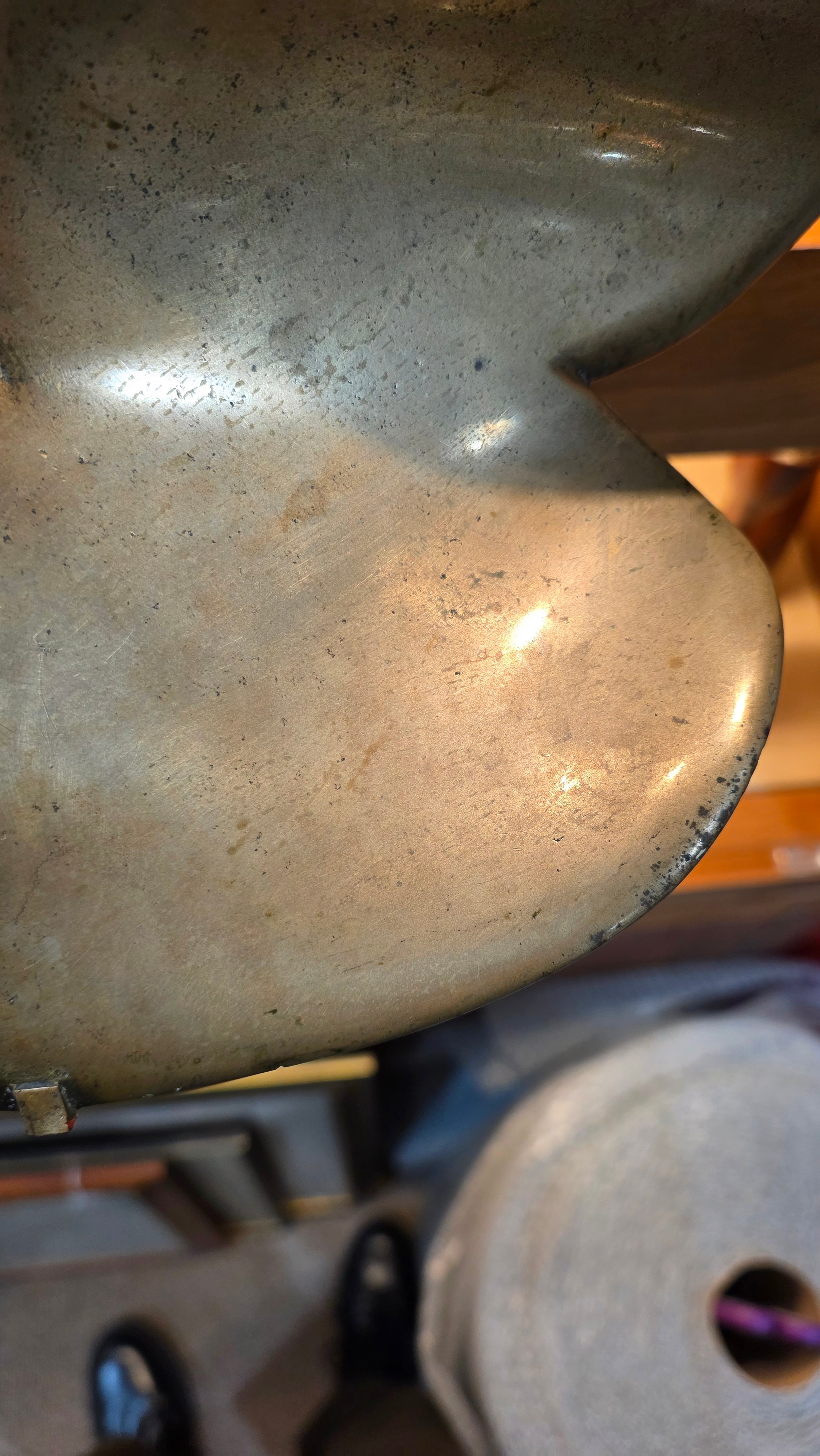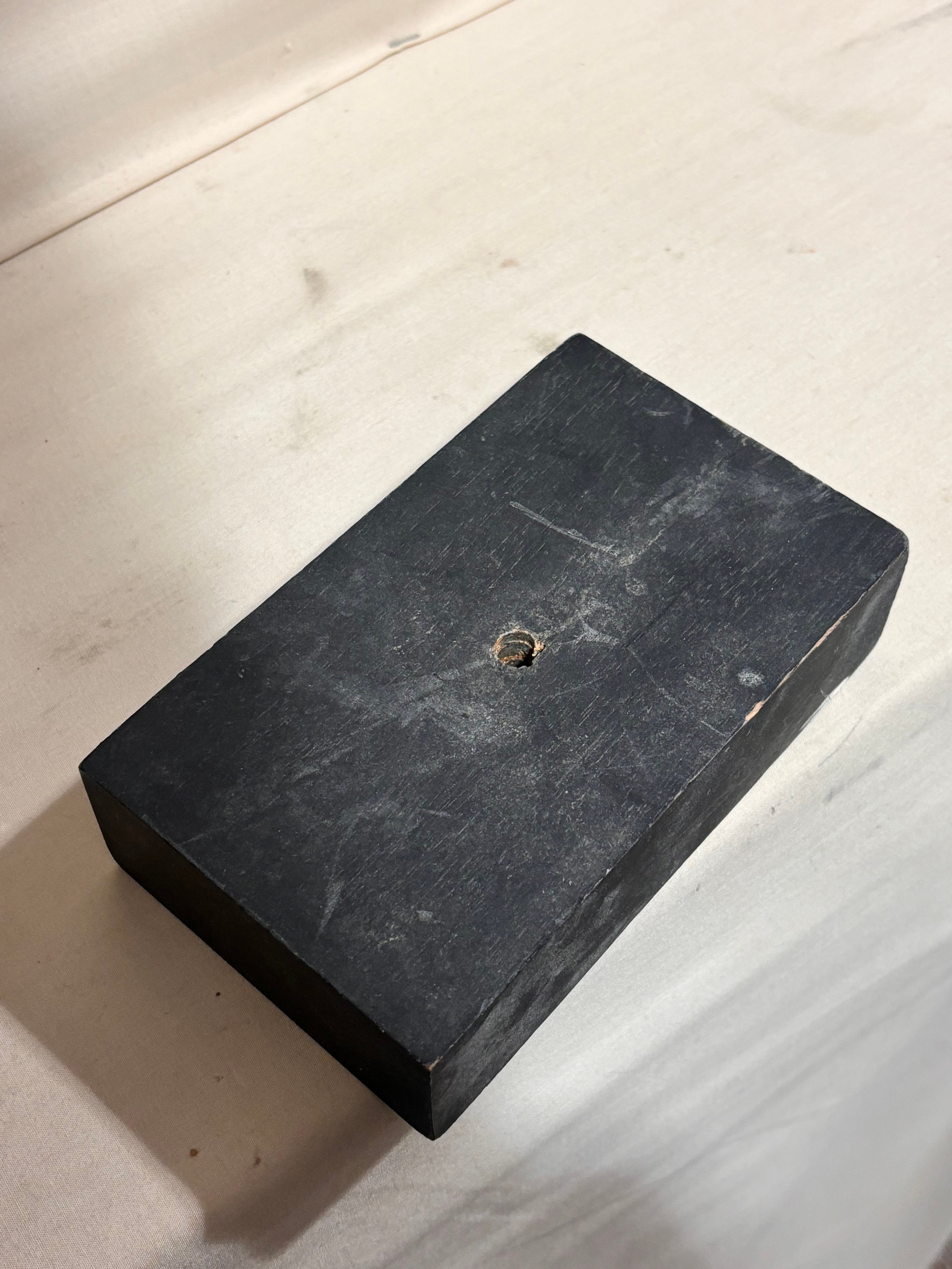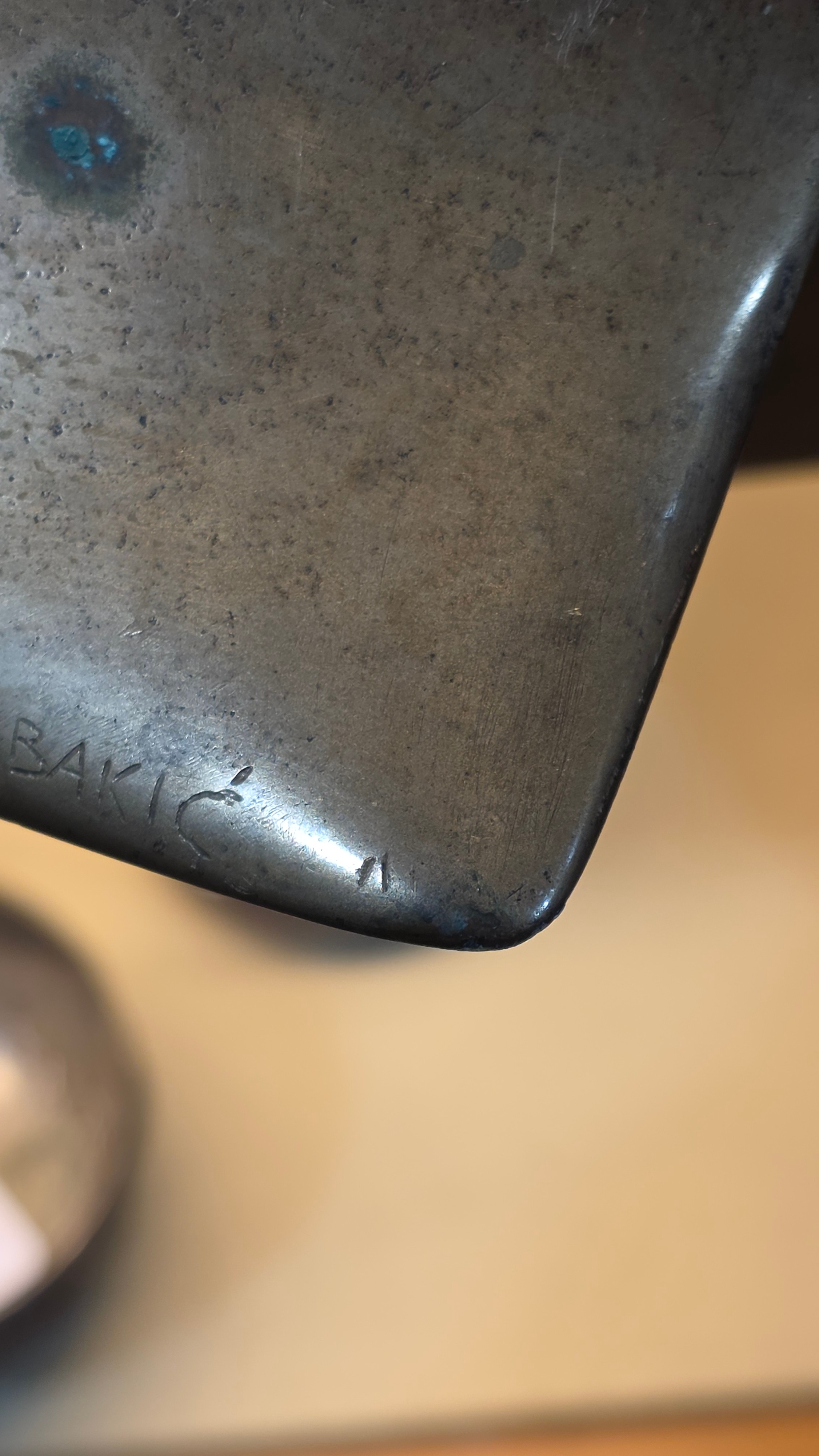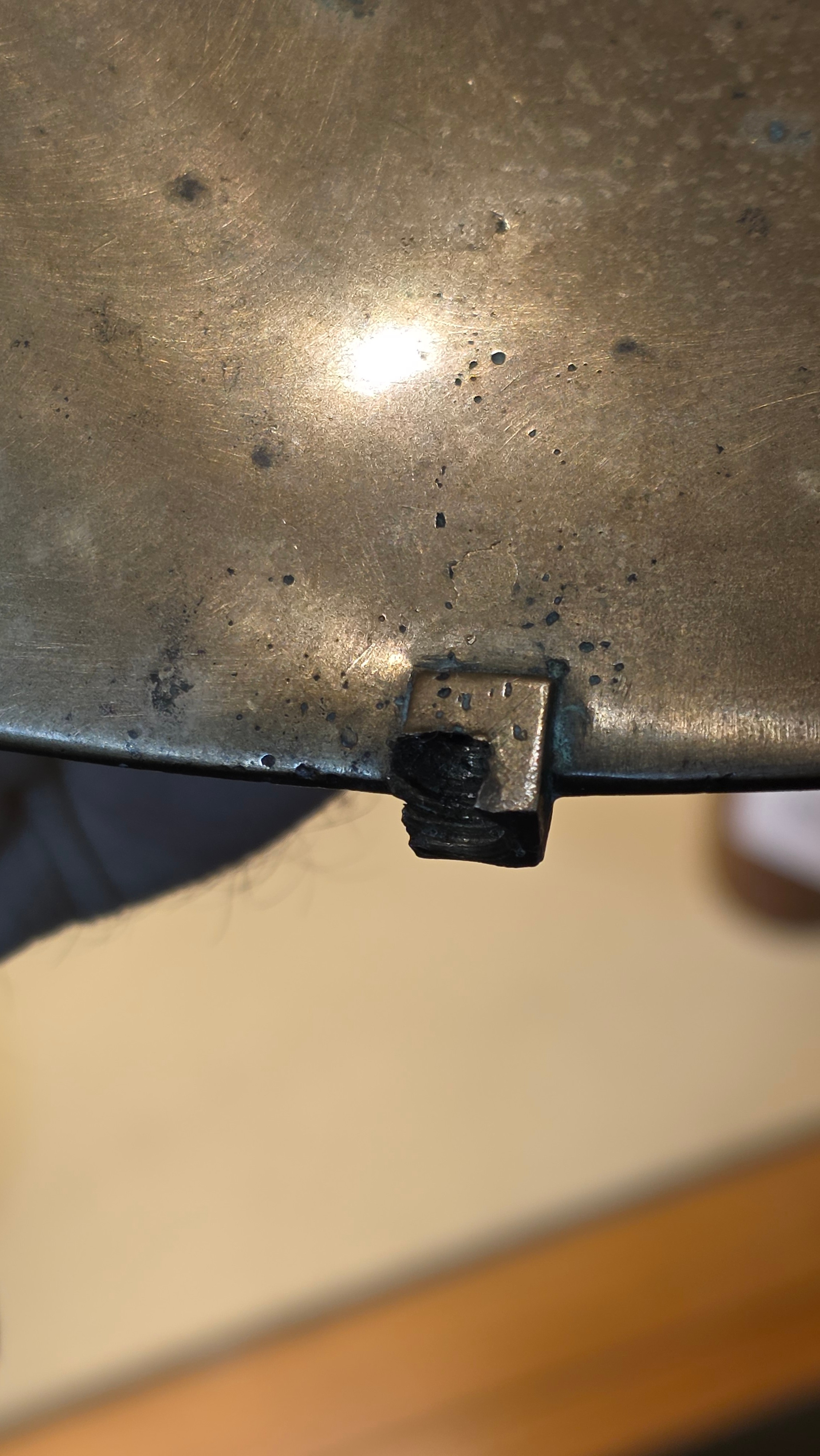 An addition square section was added to the bottom on the sculpture and has screw threading, this box section is broken to two sides, a new rod may hold this on the base or a repair to the box section may be required, otherwise good condition with slight tarnishing
