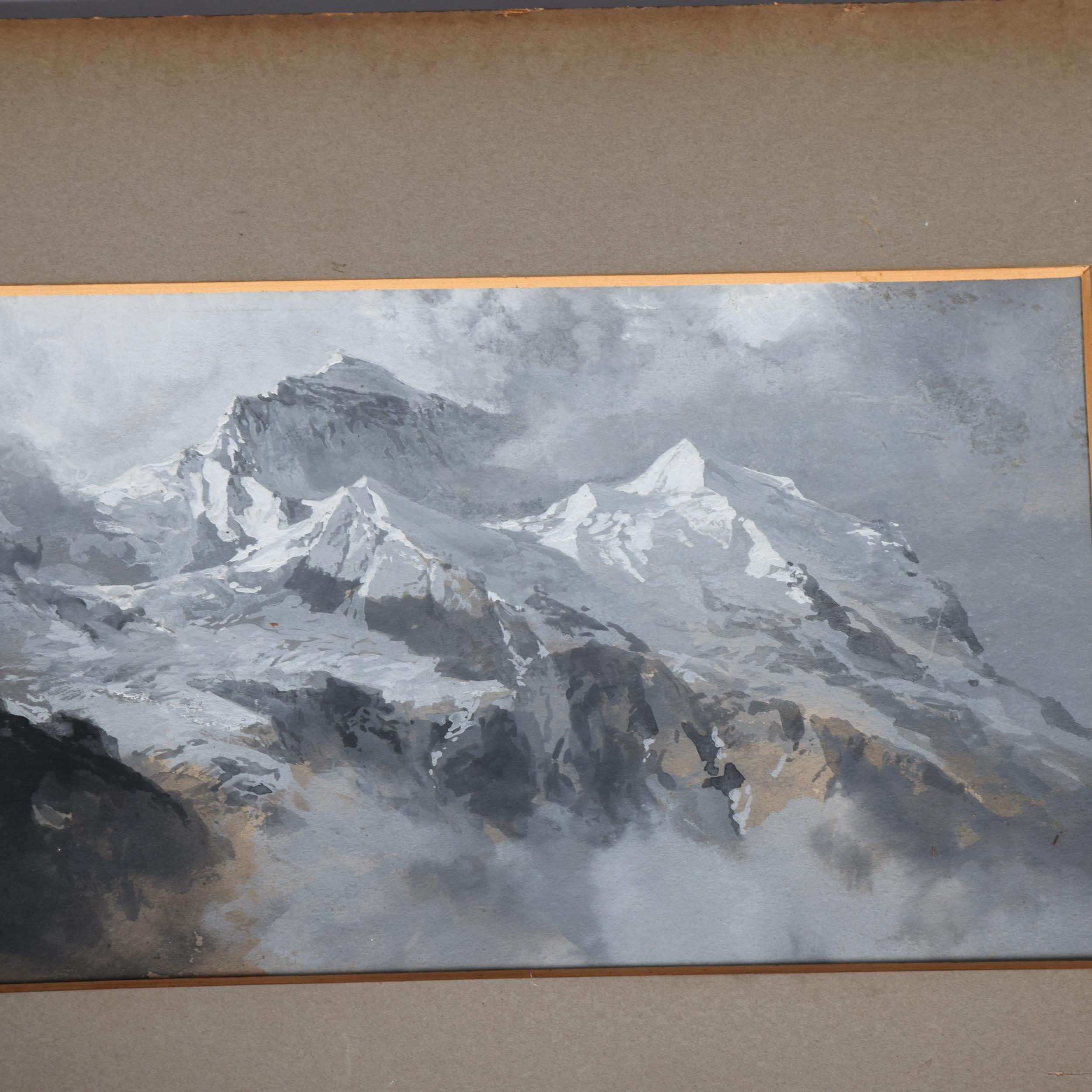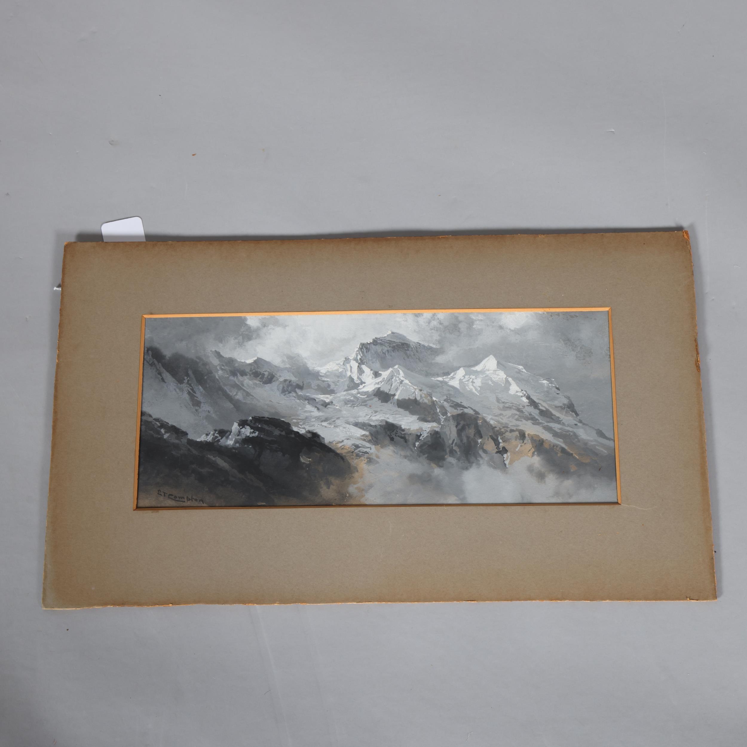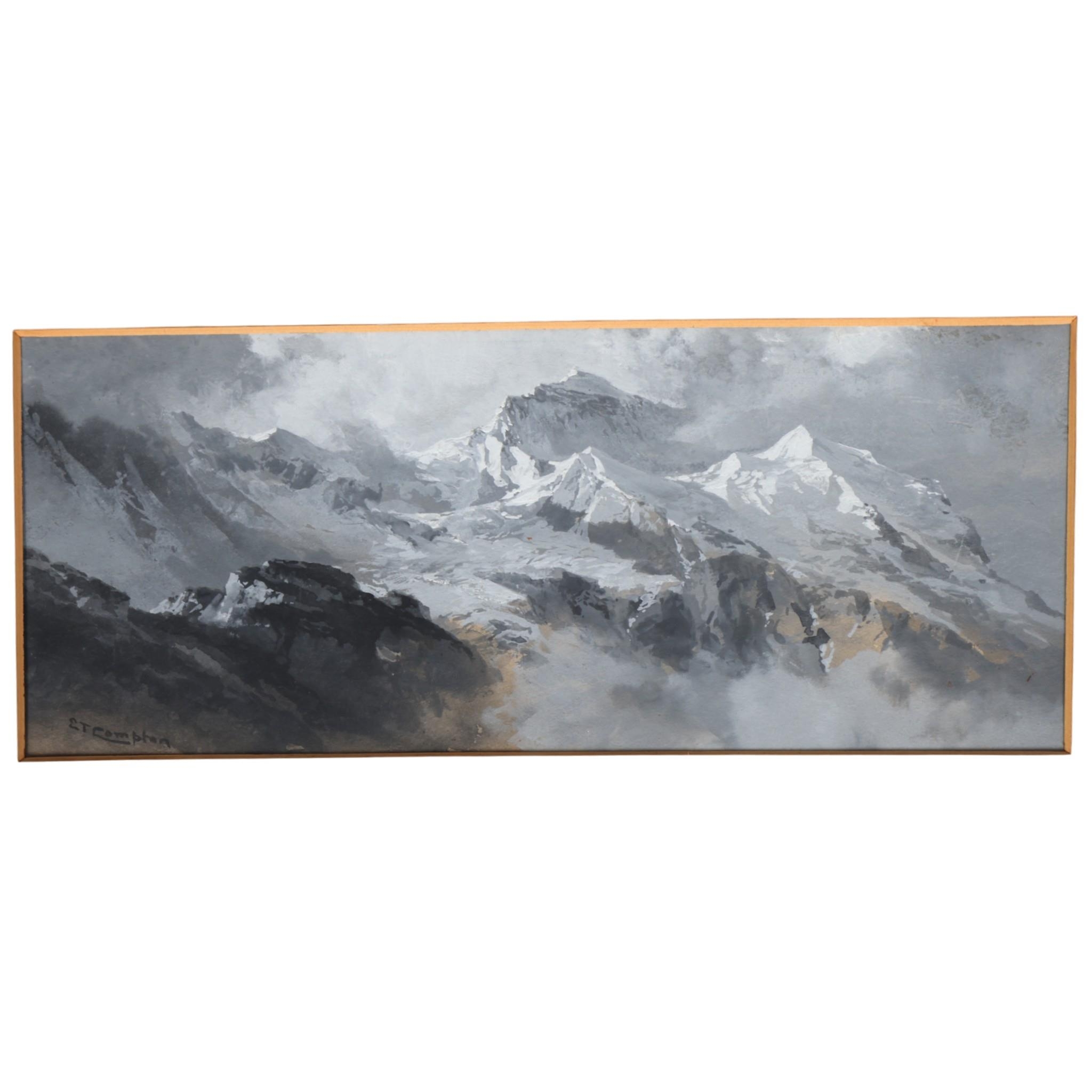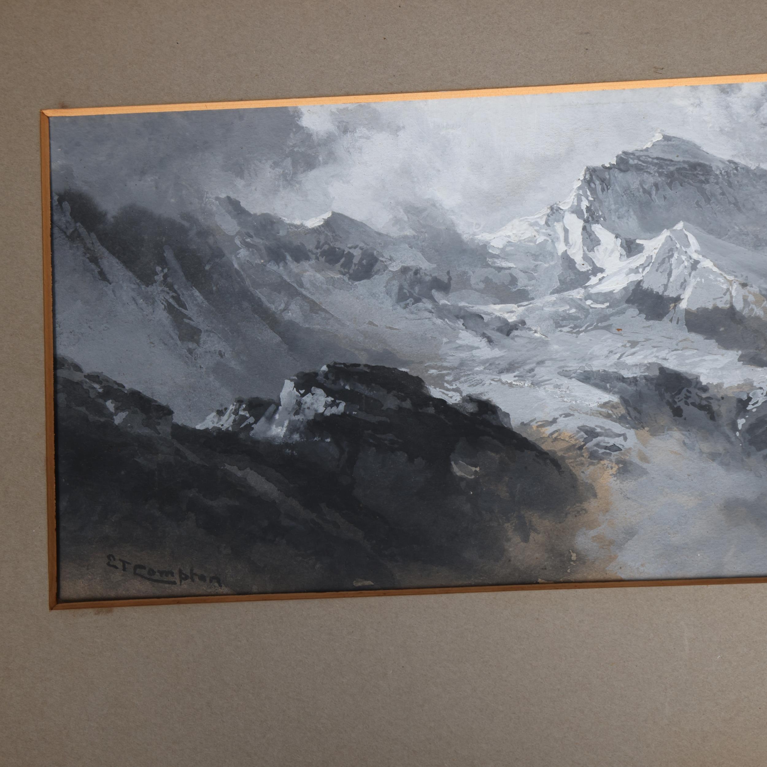 Edward Theodore Compton (1849 - 1921), mountain landscape, watercolour heightened with white, 15cm x 35cm, mounted