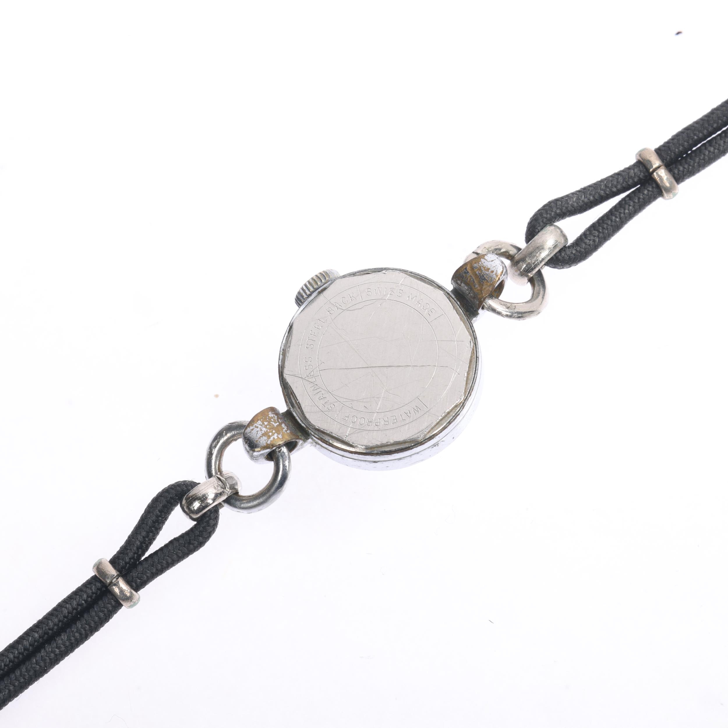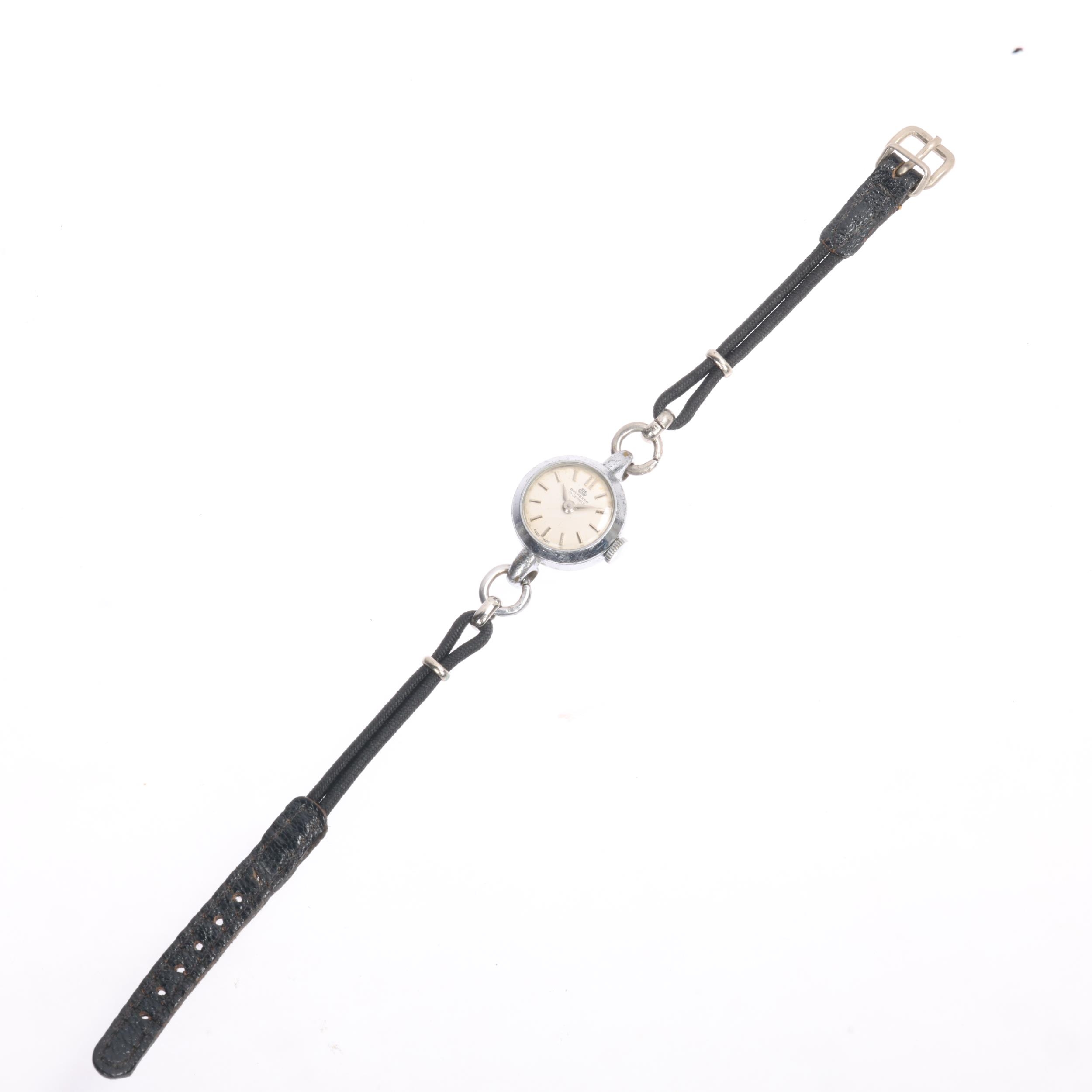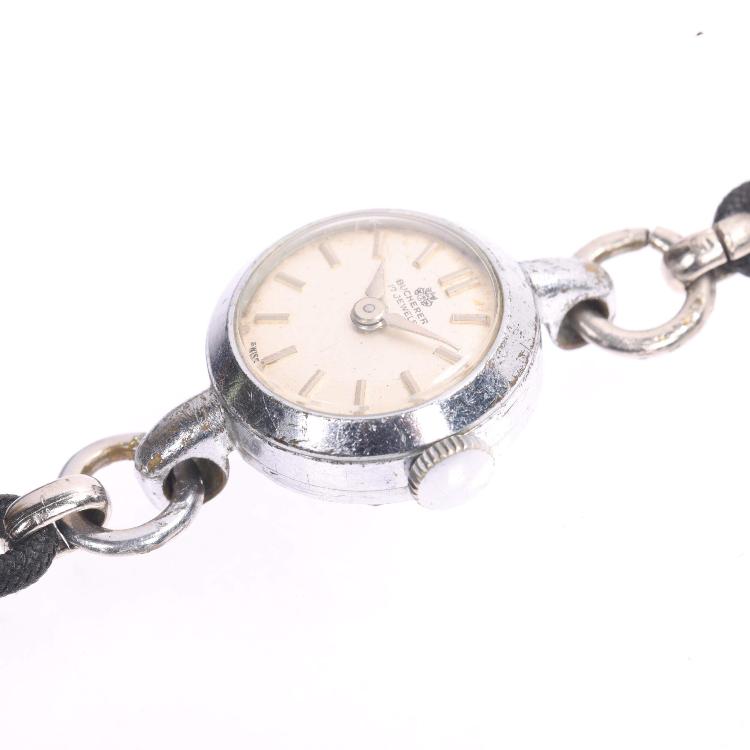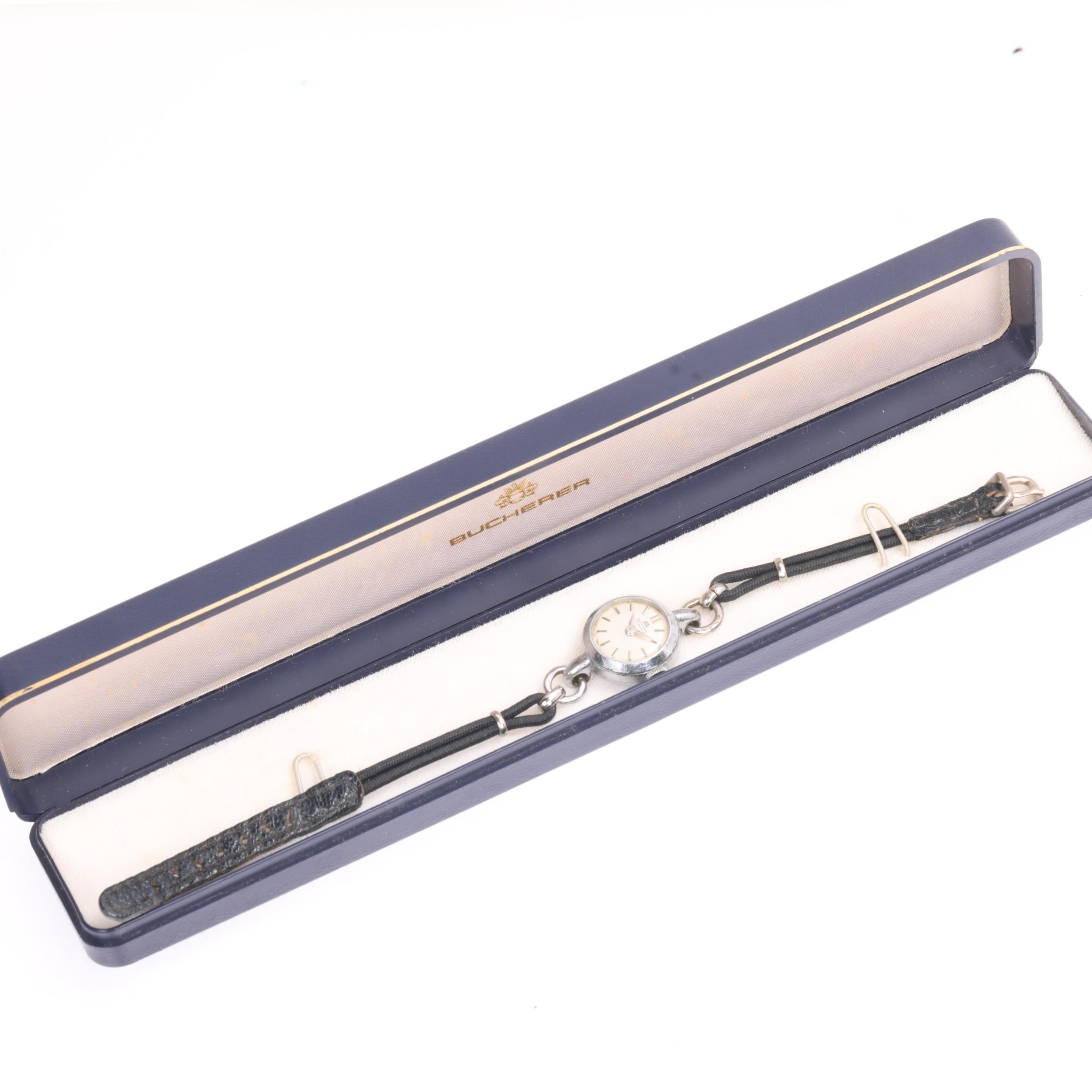 BUCHERER - a lady's Vintage stainless steel mechanical wristwatch, circa 1960s, silvered dial with baton hour markers and lance hands, 17 jewel movement, case width 18mm, working order, boxed