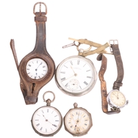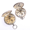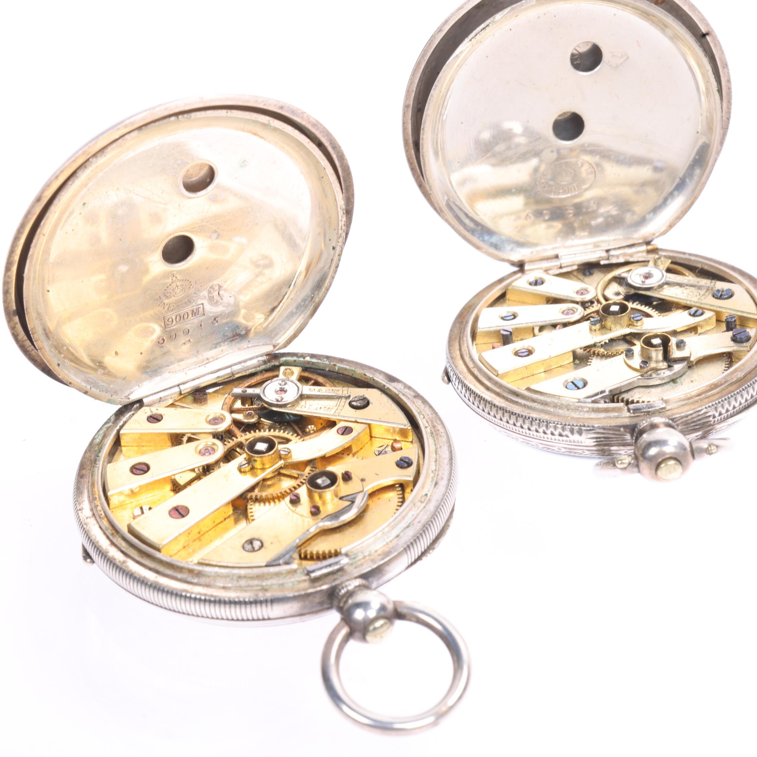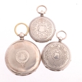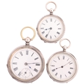 3 Antique silver open-face key-wind fob watches, white enamel dials with black Roman numeral hour markers, largest case width 47mm, not currently working (3)