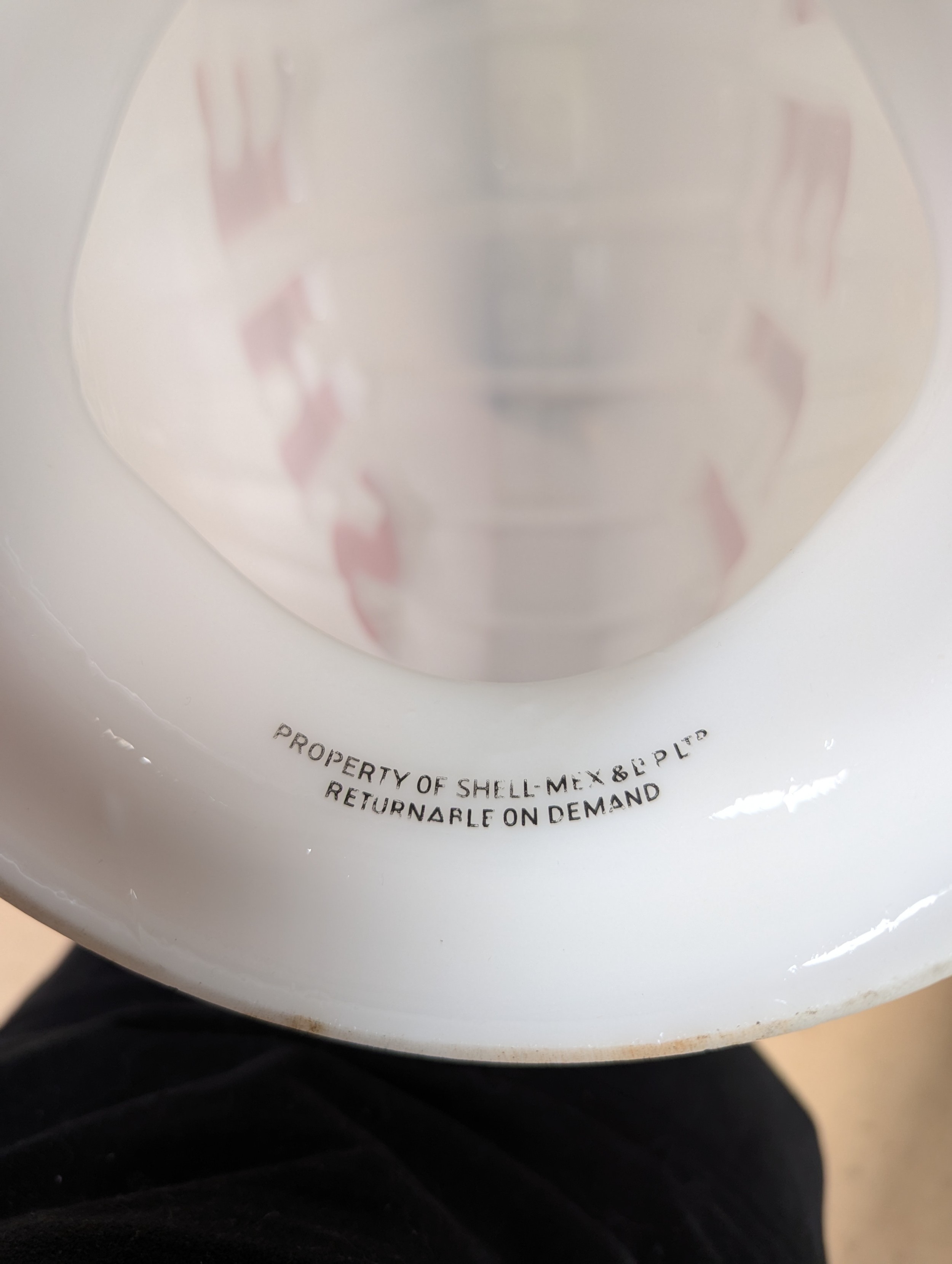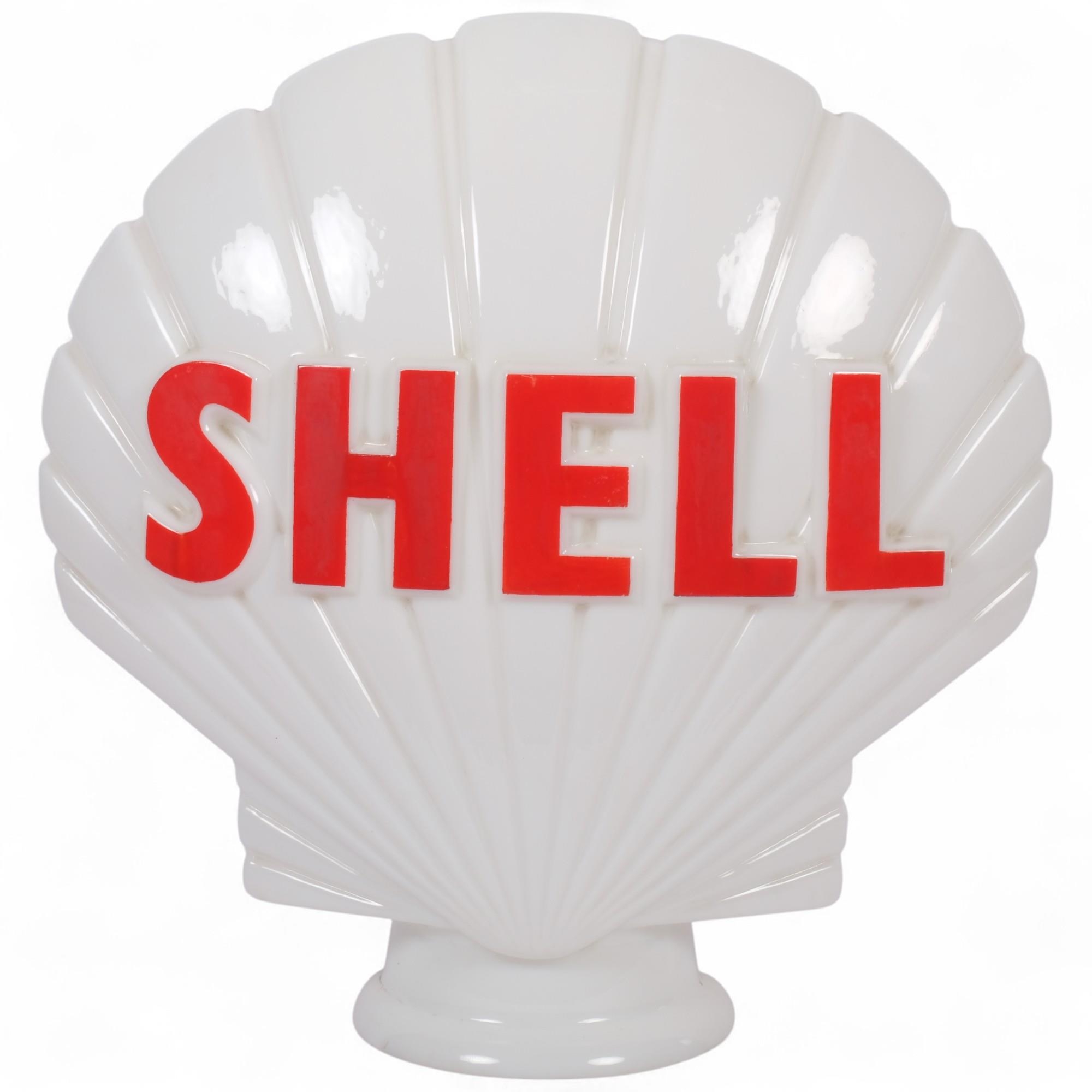A vintage double-sided Shell advertising pump globe, overall length 42cm, height 45cm, depth approx 18cm