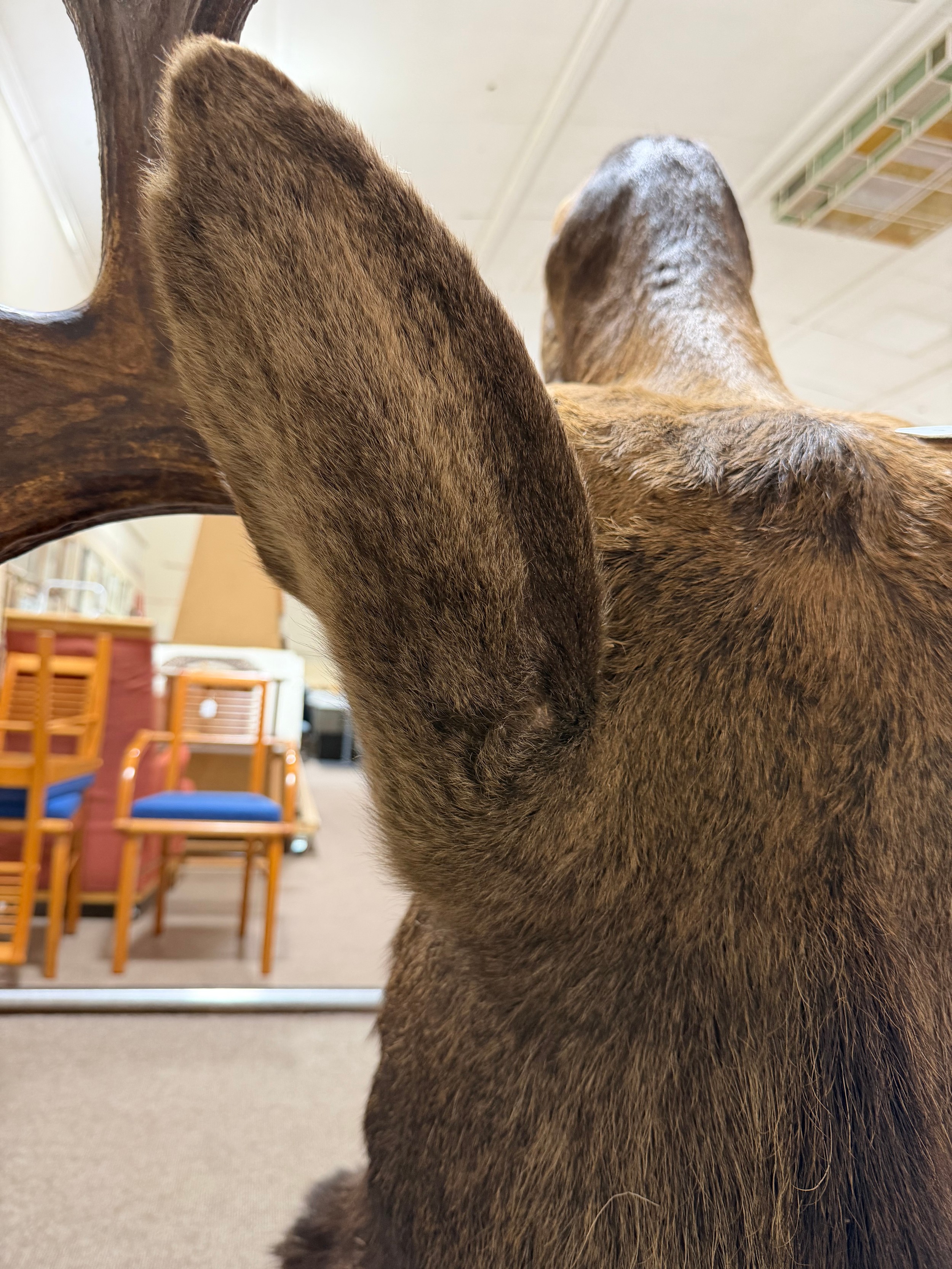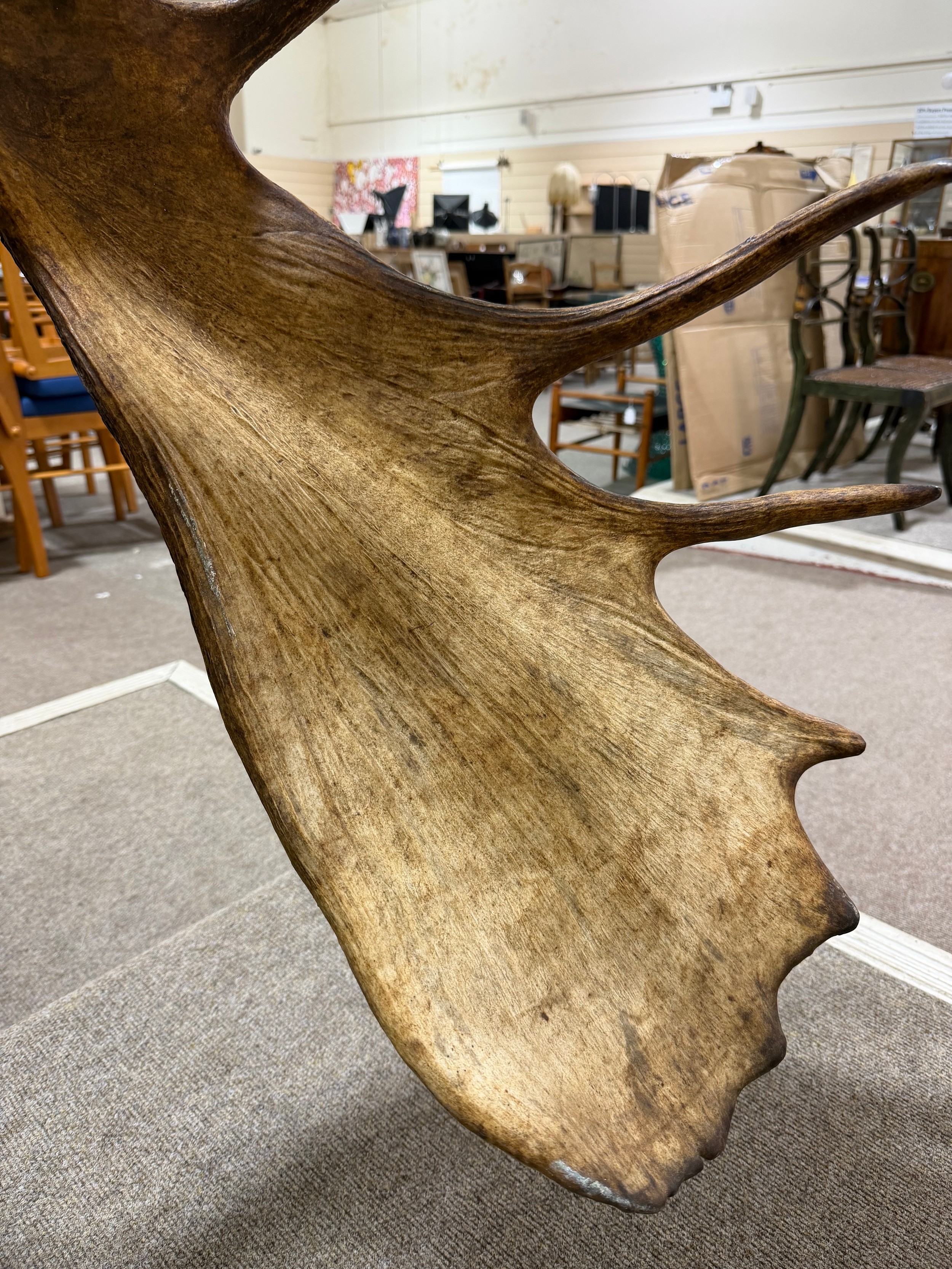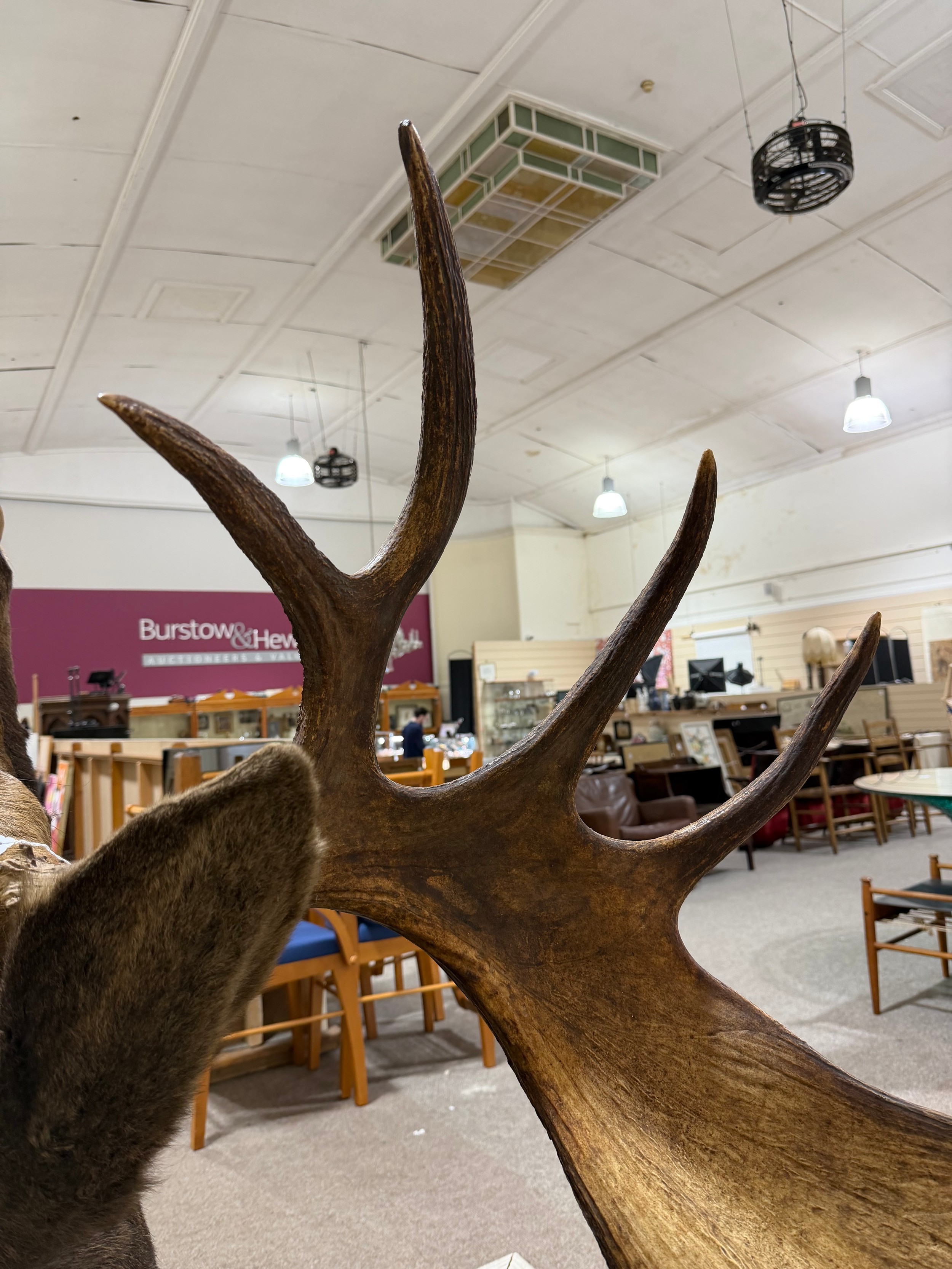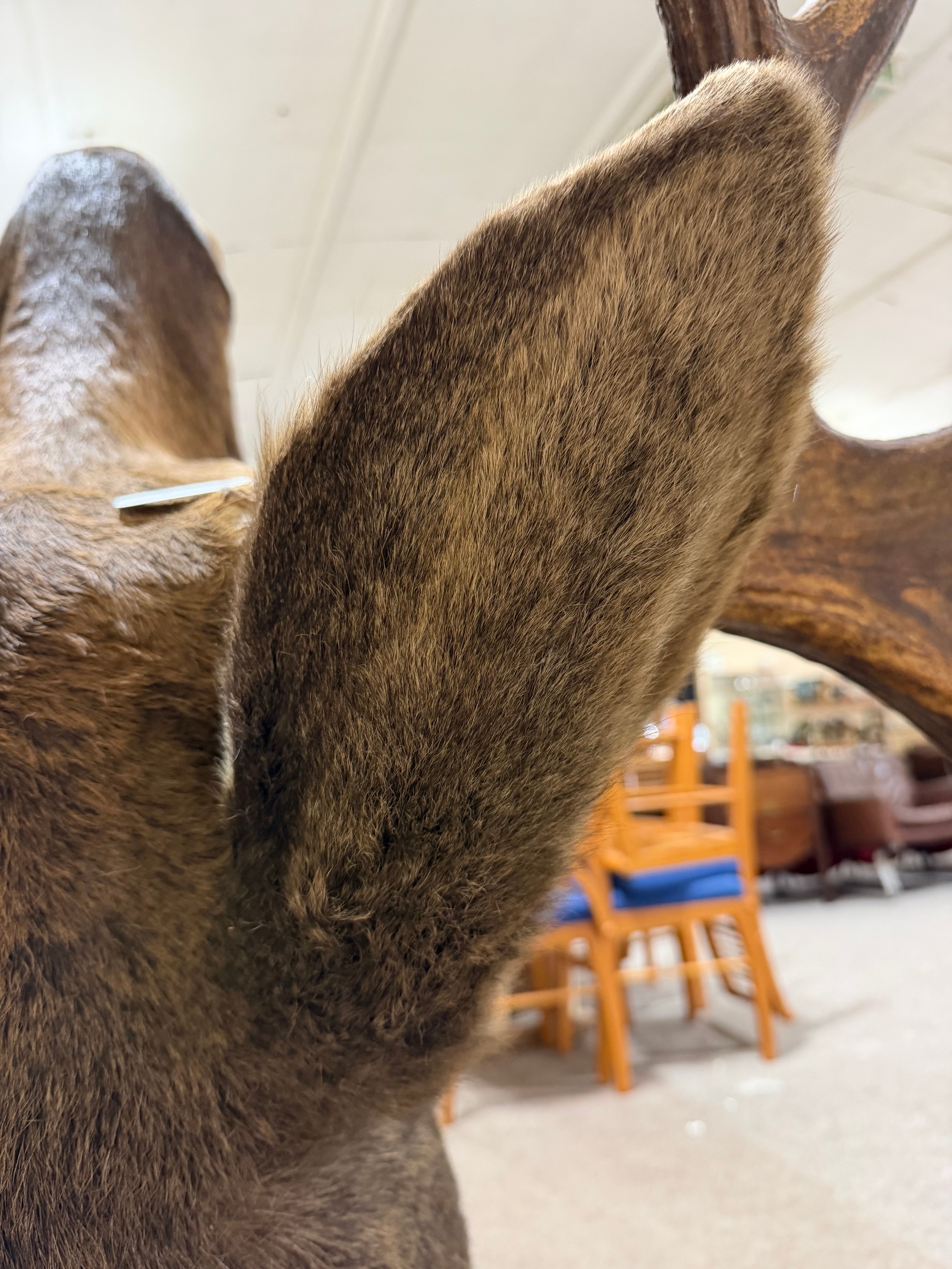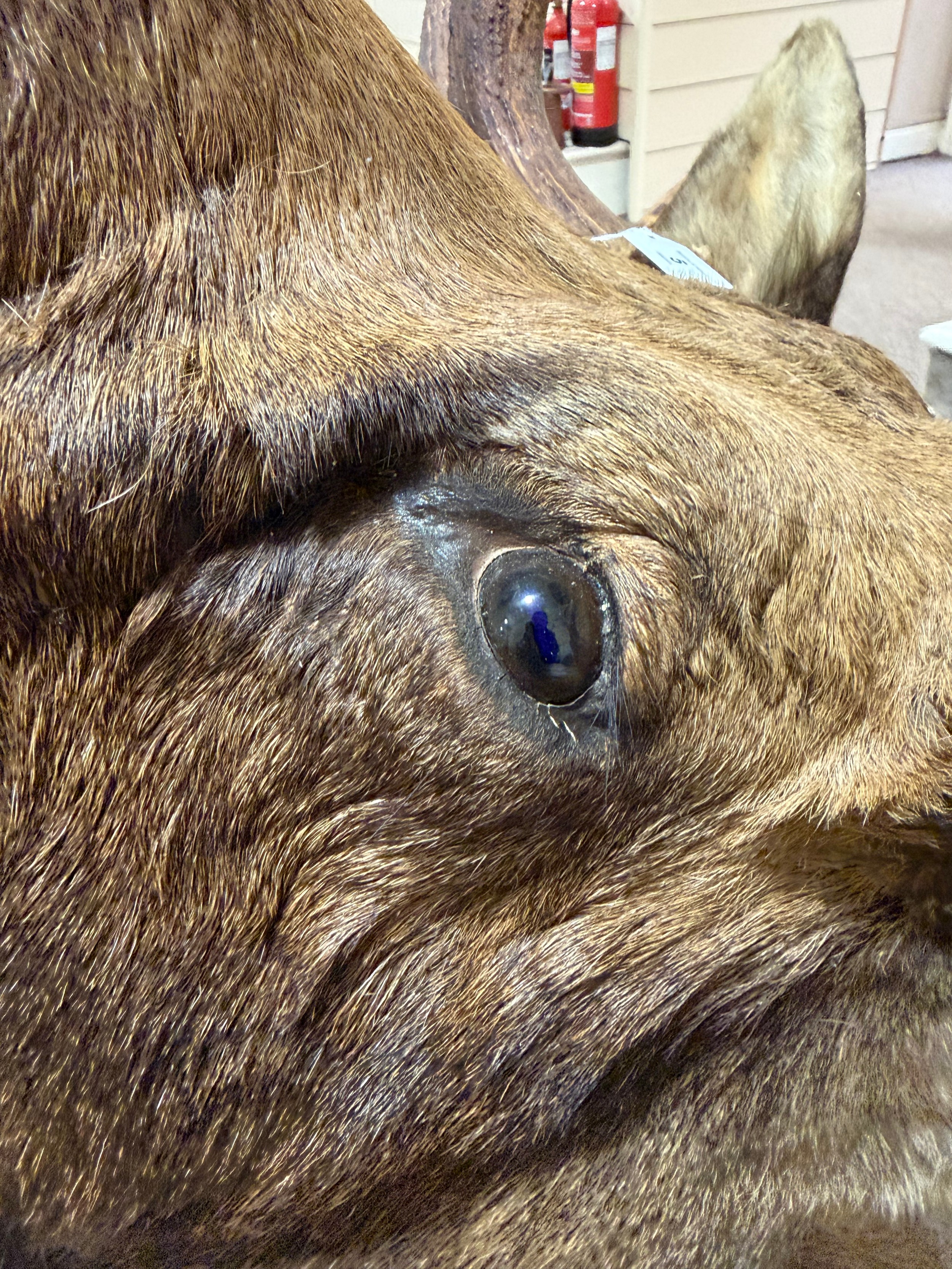 TAXIDERMY - a massive adult moose (Alces alces) head, should mount with 13-point antlers, span of antlers approx 1.5m, overall height approx 1.4m, CITES exempt, however prospective bidders should check export documentation requirements before bidding