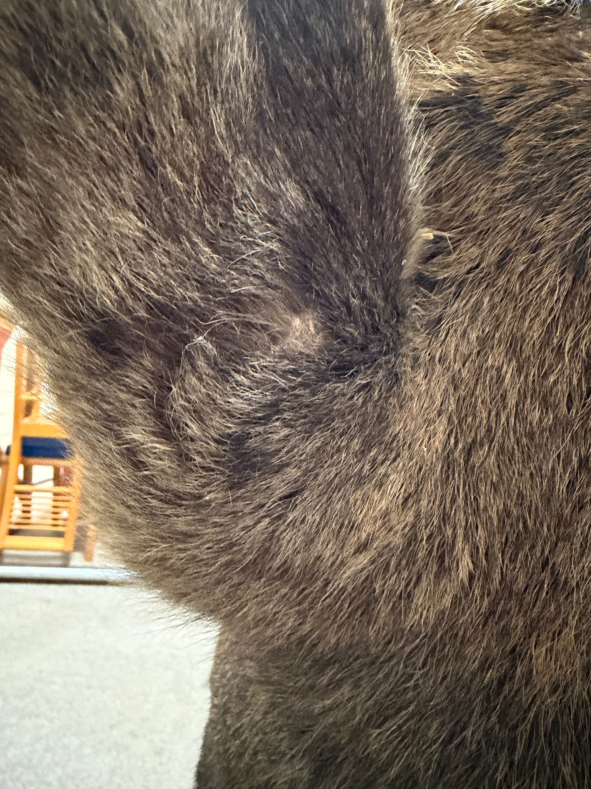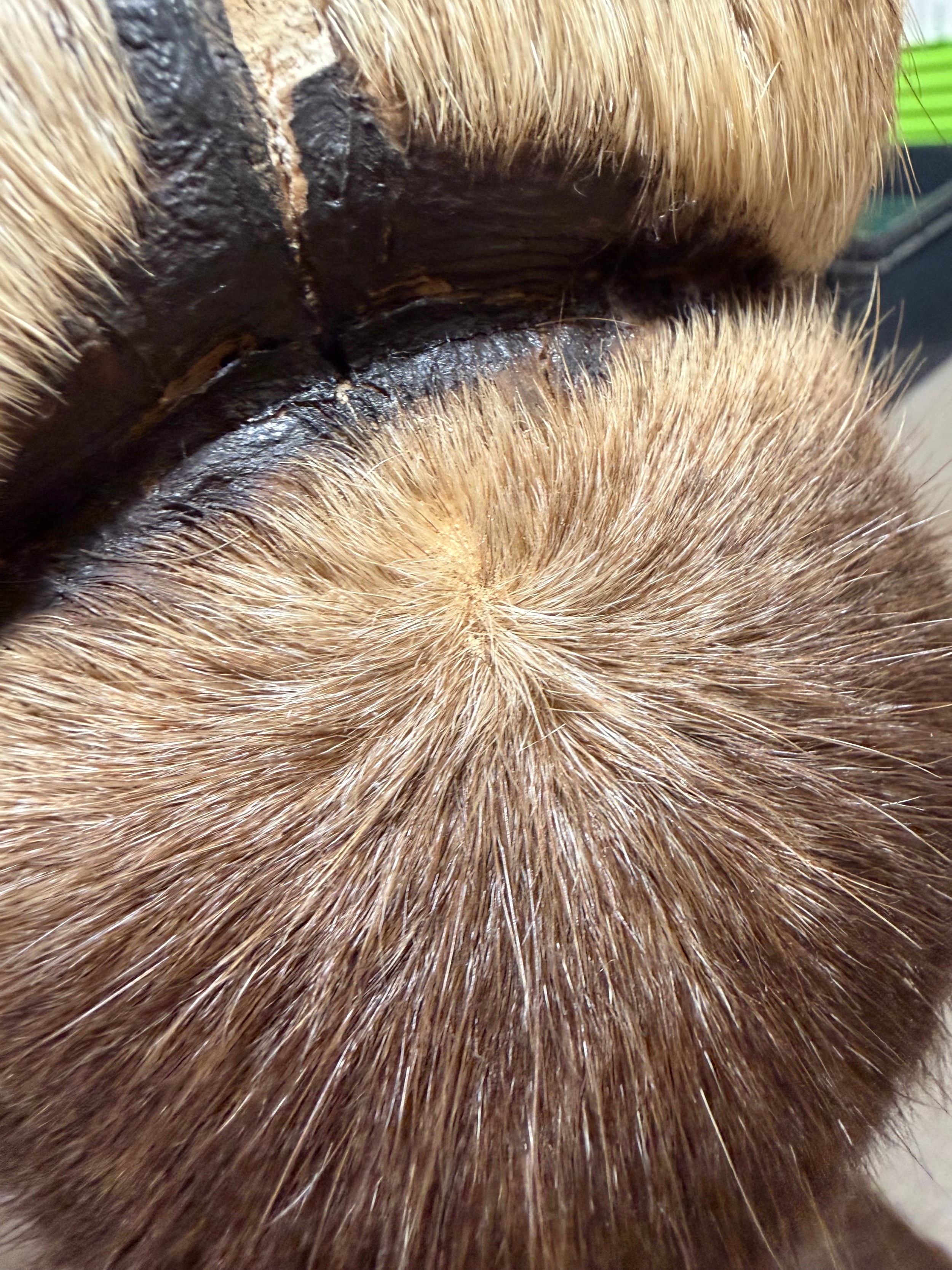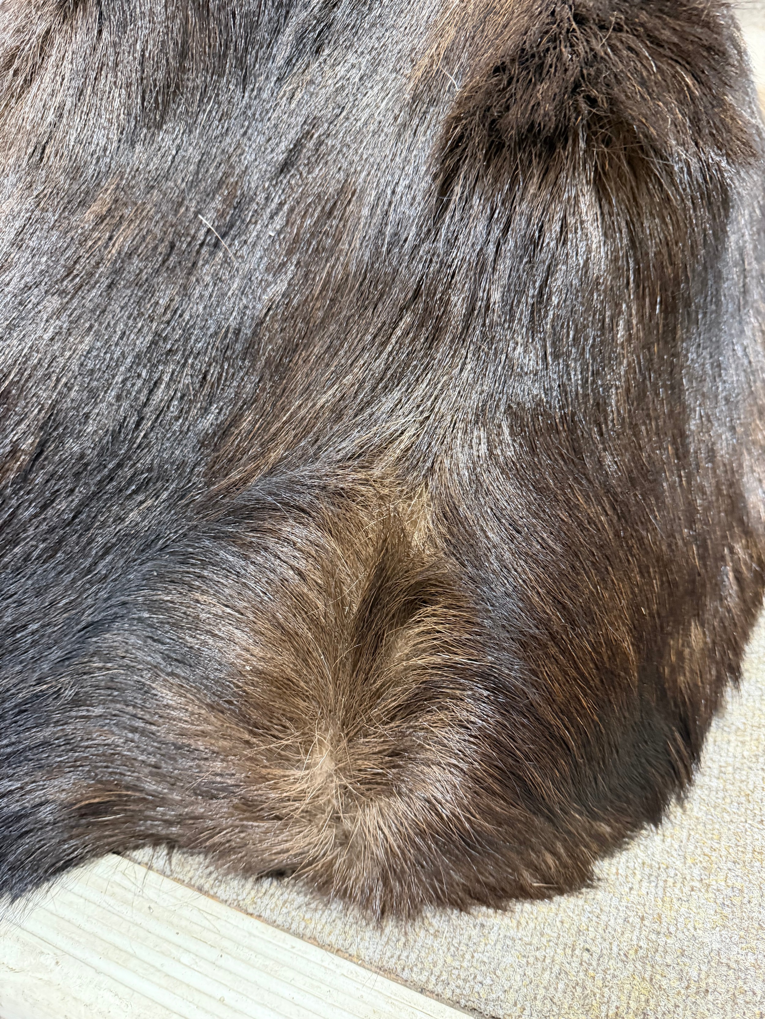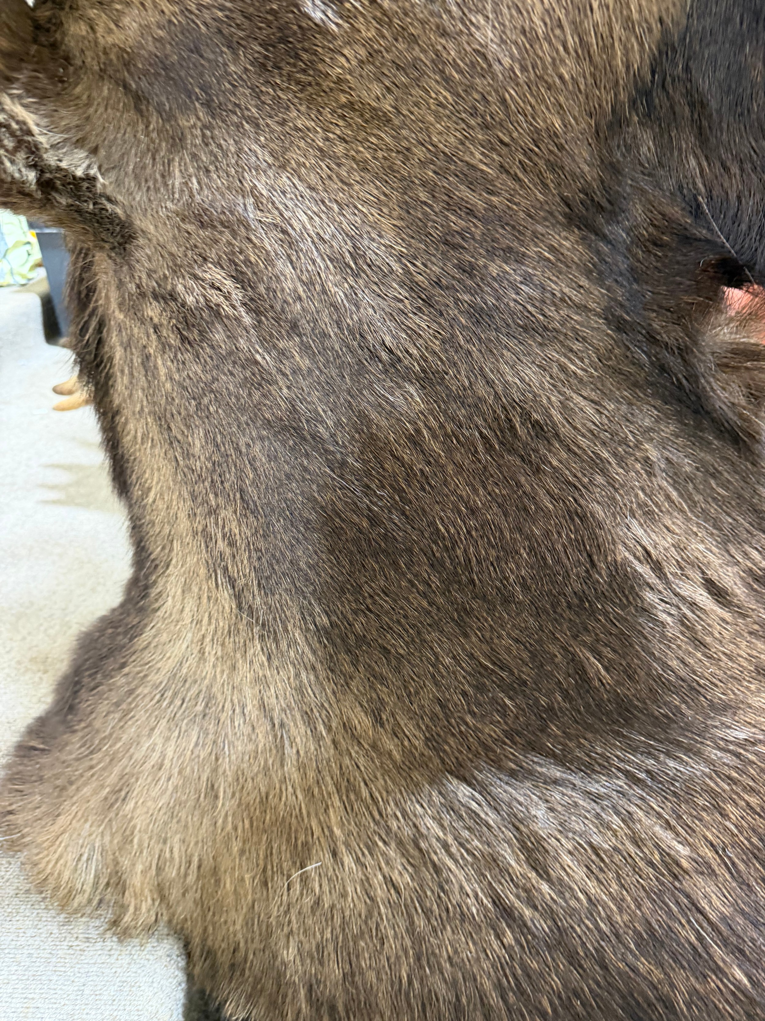 Good condition, some light hair loss to the ears and visible seams here. Losses to the mouth section and the horns are firmly attached and cannot be removed.