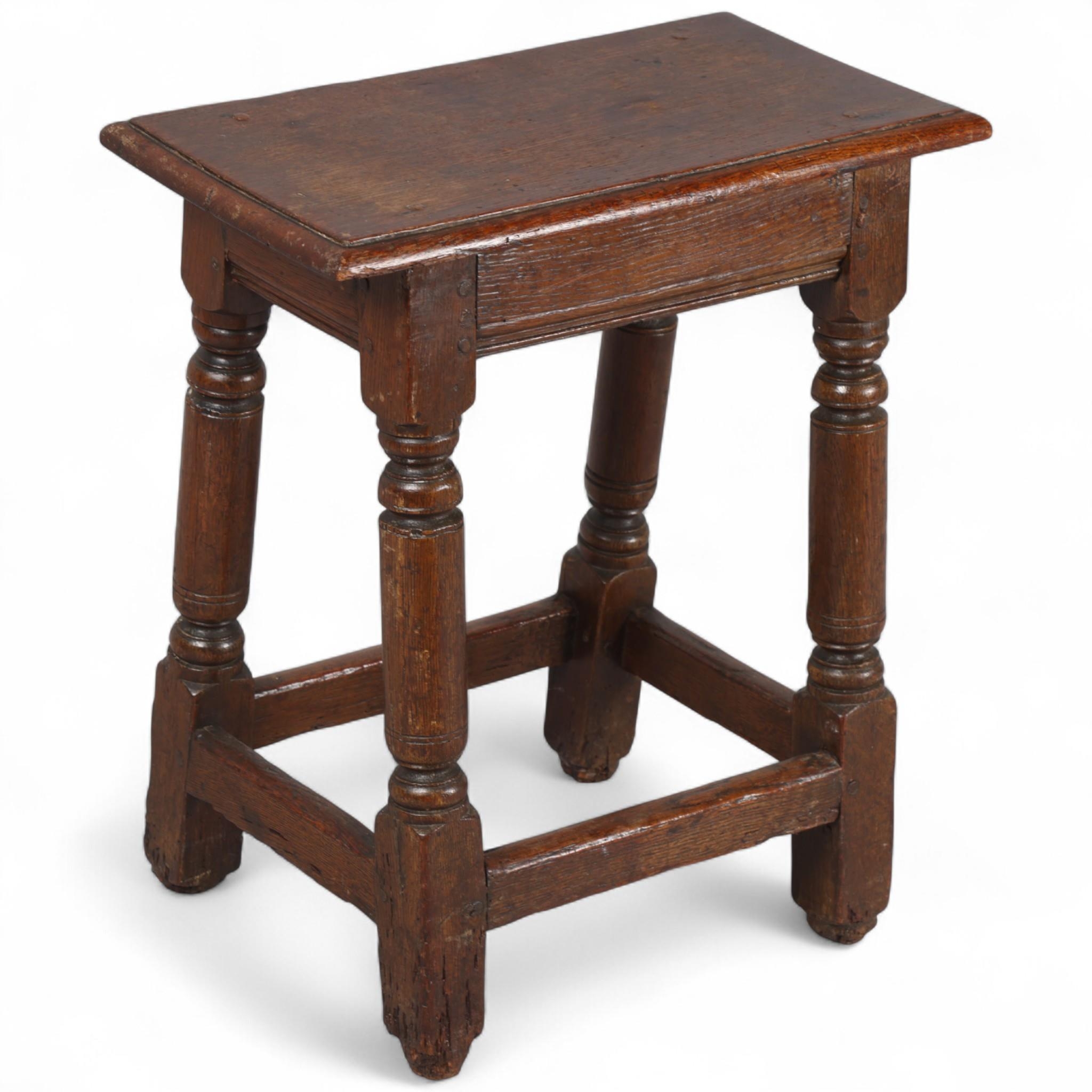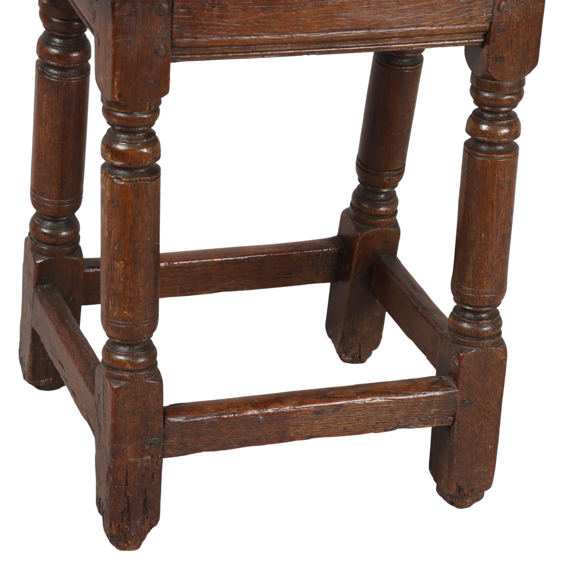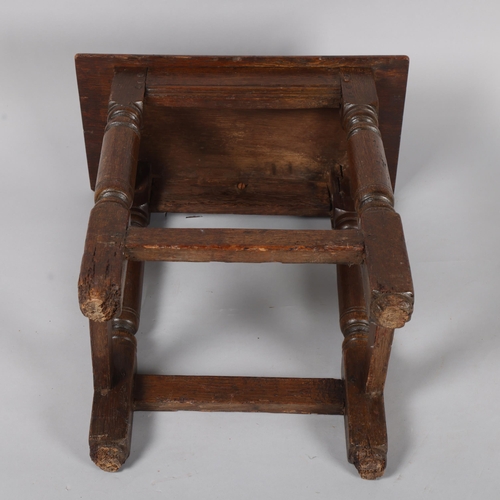 Antique oak joint stool, height 53cm