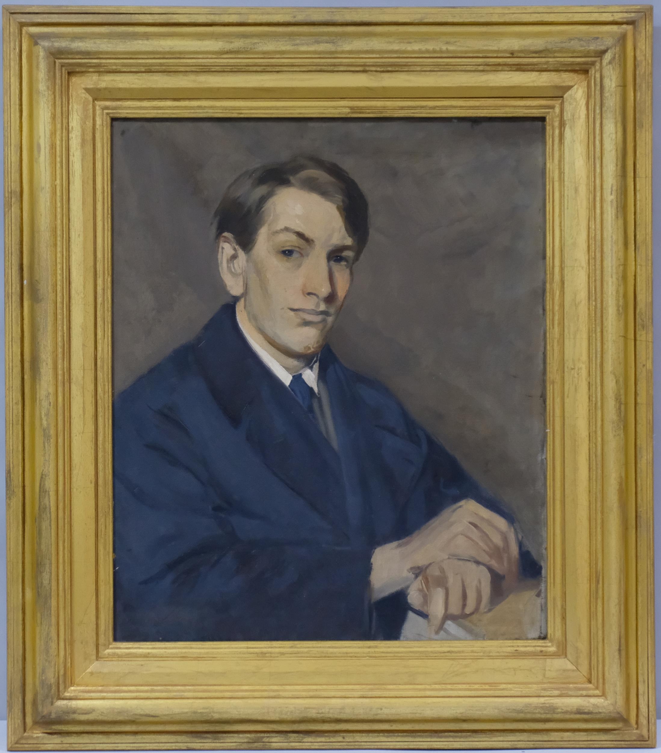 Description amendment - Portrait thought to be of of W H Auden (1907 - 1973), by Rene Robert Quinn (died 1934), oil on canvas, 1927, 62cm x 51cm, framed.