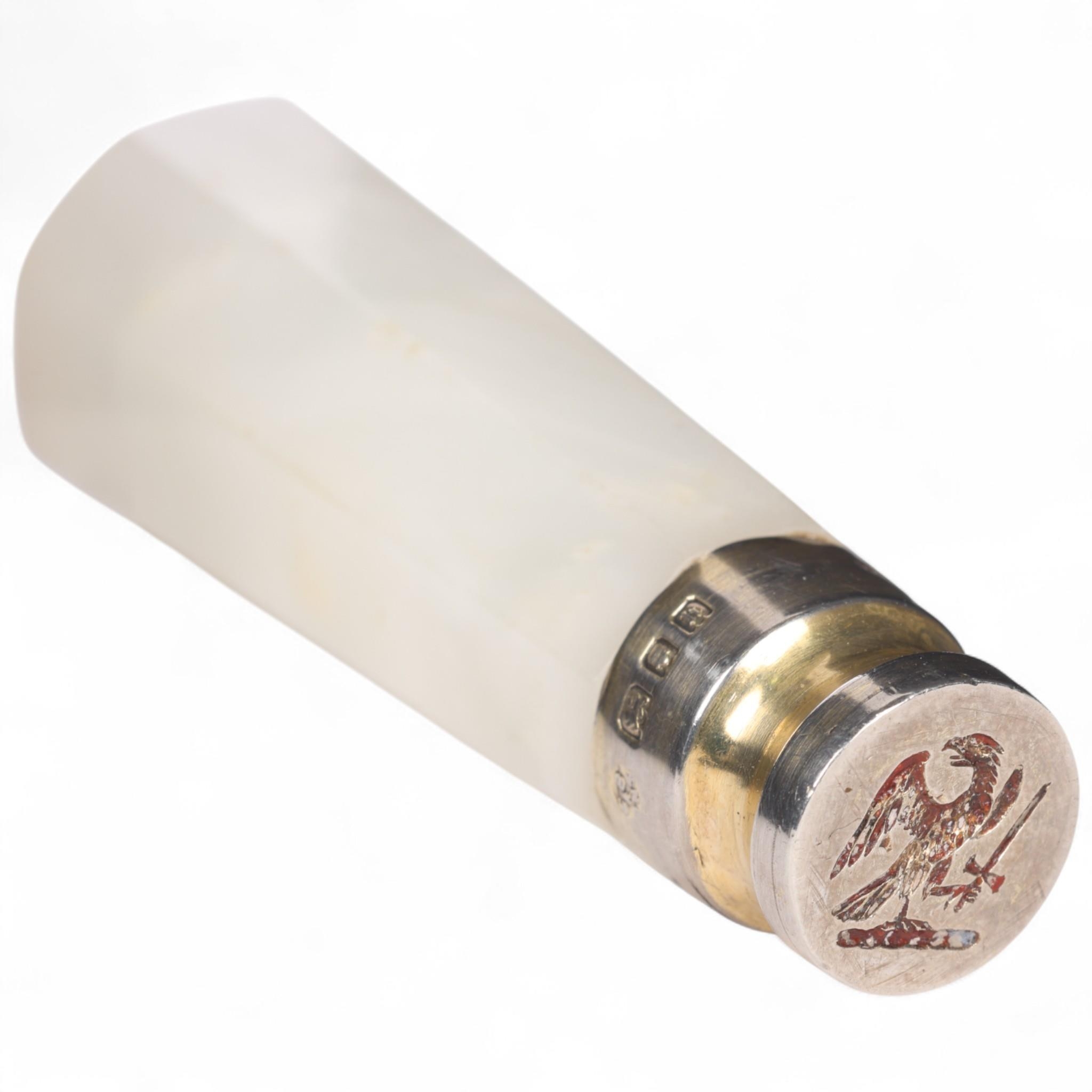 A silver desk seal with facet-cut whote onyx handle, hallmarks London 1923